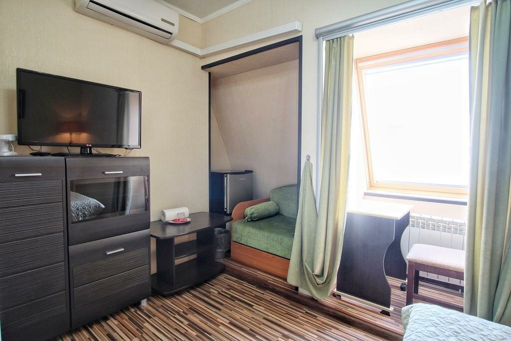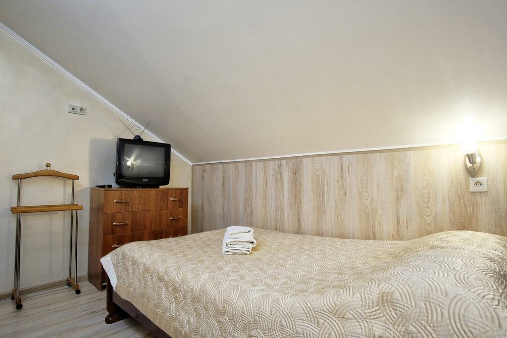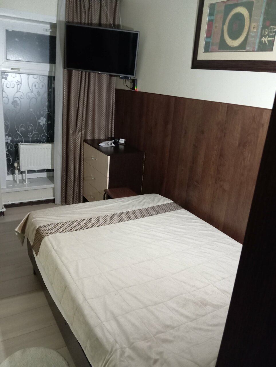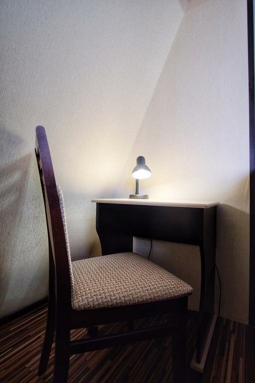 Останавливались в гостинице проездом. У нас был мансардный номер с двумя комнатами, довольно уютный. В маленькой комнате не работала прикроватная лампа, но был верхний свет. В номере есть все, что нужно: фен, холодильник, чайник, кондиционер, чашки с ложками. Постели чистые, матрасы и подушки удобные, выспались отлично. Окна заклеены матовой пленкой, т.к. вид из окон не впечатляет: рядом с гостиницей находится телевизионная вышка. На 1-м этаже есть общая кухонка, где есть микроволновка, холодильник. Неплохая гостиница для тех, кто как и мы останавливается на ночь проездом.