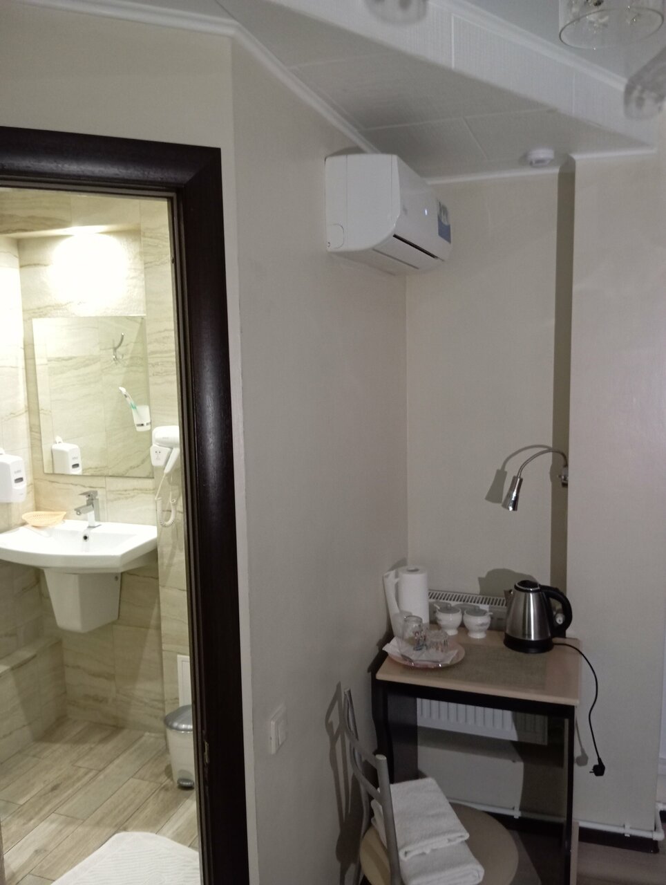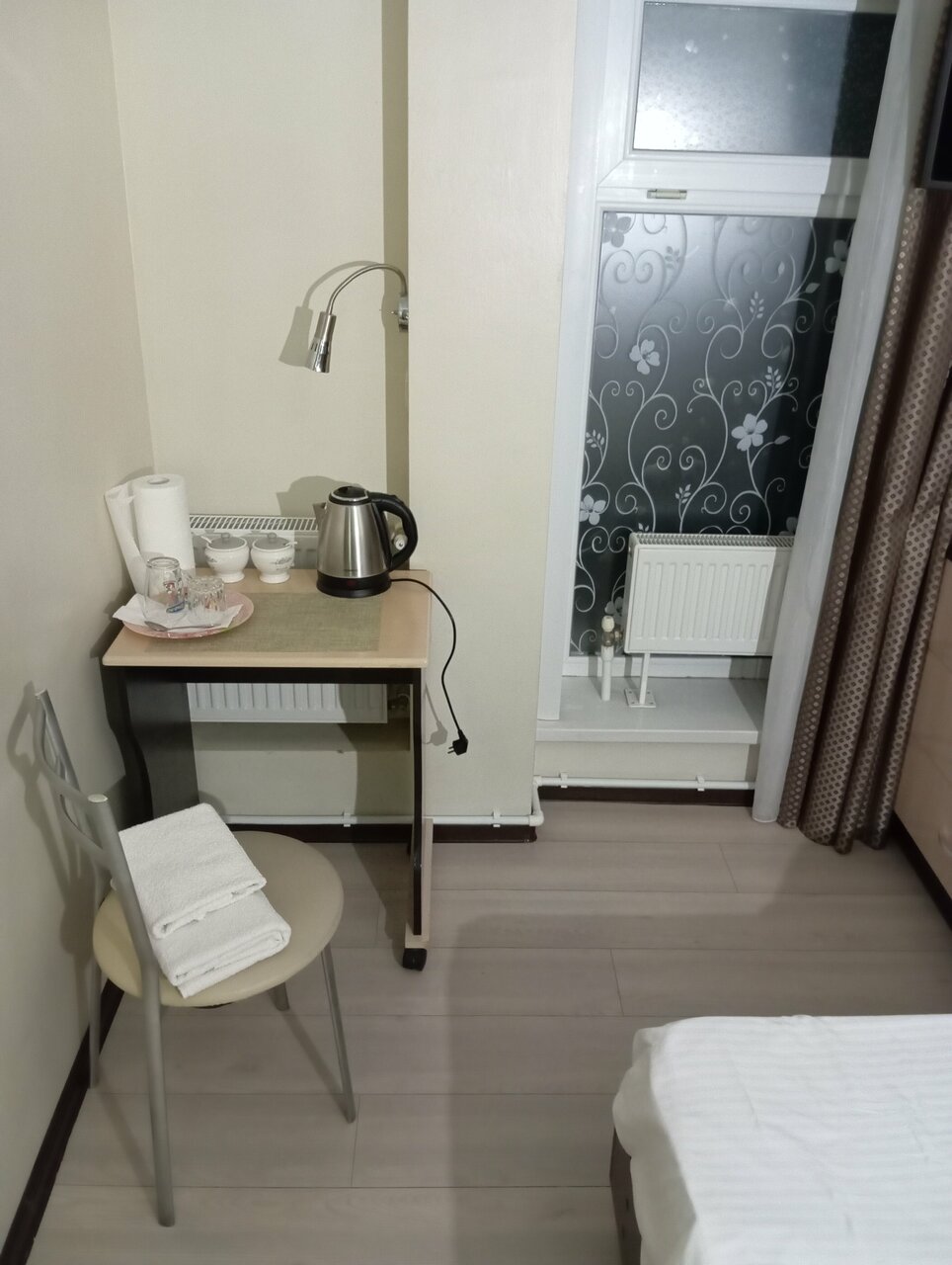 Хороший мини отель. Чисто. Уборка каждый день. Есть все необходимое. Удобное расположение. Рядом есть остановка автобуса, магазин Пятёрочка. В отеле можно попить чай, кофе ,приготовить еду, а можно заказать завтрак у сотрудников.Рекомендую.