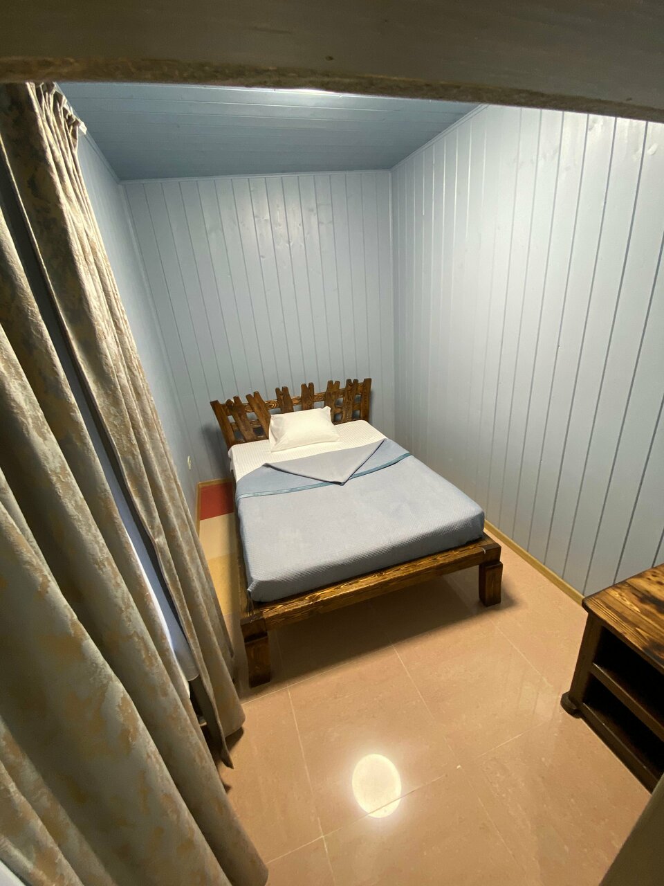 Нужно было место на одну ночь, для ночёвки после работы и раннего отъезда. Заранее созвонились с хозяином, забронировали место, внесли маленькую предоплату. Ближе к позднему заезду ещё раз созвонились, хозяин был на связи, всё вежливо. Нас встретили, расположили. На мой вкус — очень уютное место. Район — частный сектор, кругом зелень и деревья. Рядом жд платформа — меня это не смущало и ночью было абсолютно тихо. Номер на свои деньги очень соответствует. Ремонт, чистота, удобный матрас, зубные щётки, шампунь, гель, всё есть. С оформлением в виде дерева — мне такое нравится. Так же и внизу есть столики, где можно уютно посидеть, всё деревянное и уютное. С хозяином пообщались, он рассказал, как сам всё строил, всё доброжелательно. Сказал, что есть сауна, бассейн, и теперь хочется компанией приехать целенаправленно туда отдохнуть. Спасибо за гостеприимство!