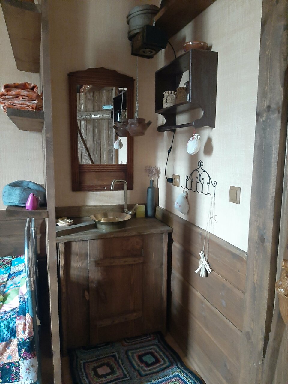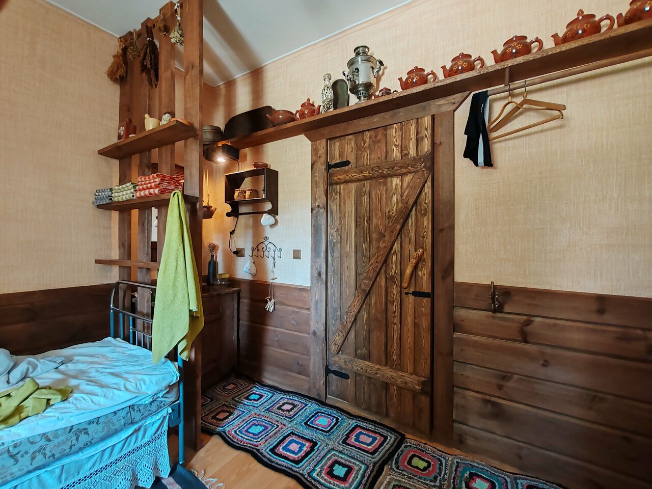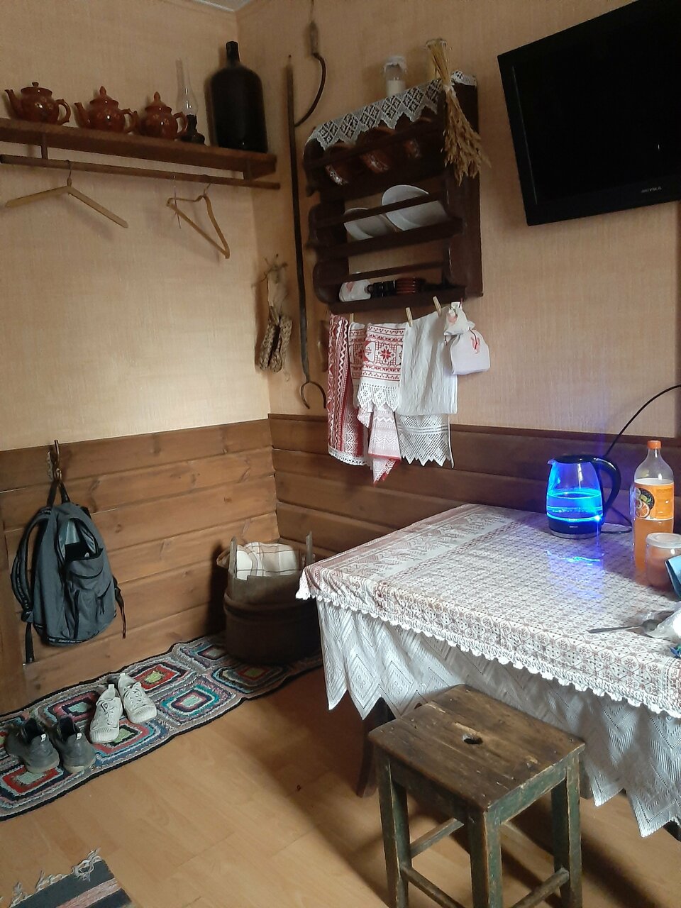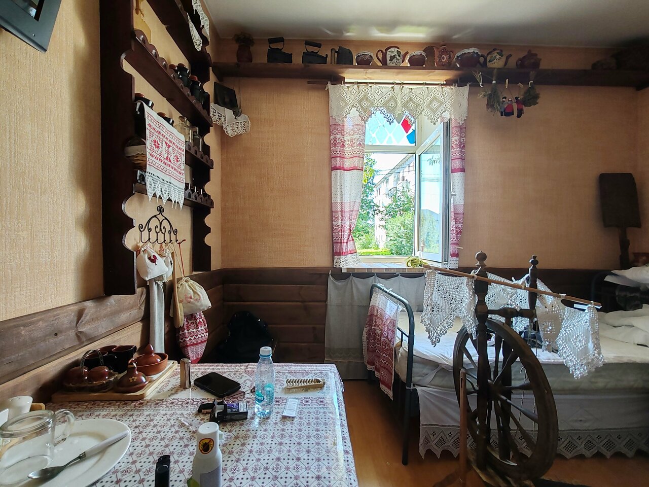 Номер хороший, сделан под старину. В номере все есть. Есть чашки, ложки, тарелки, чайник и даже умывальник. Подкачал только душ, когда мы заезжали нагреватель сгорел, пришлось мыться в плохом душе. В номере душа нет. На втором этаже в номерах есть балкон. Больше всего понравилось чистейшее постельное белье.