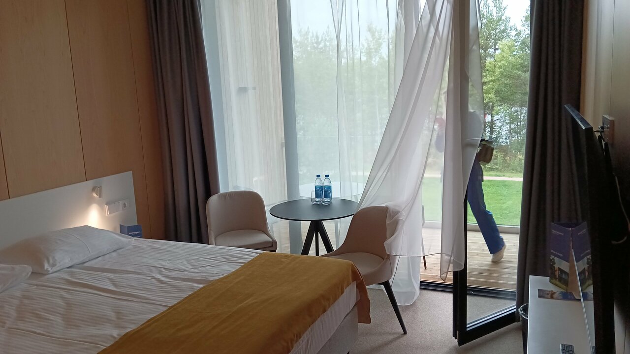 Идеальное место для тихого отдыха. Есть куда сходить погулять, есть куда съездить что-то интересное посмотреть. Сервис на твердую 5! Повышенное внимание к каждому гостю. Дикое, красивое место в лесу, на берегу реки, и при этом с высоким уровнем комфорта! Невероятное сочетание. Ресторан — ассортимент может и не очень большой, но готовят очень и очень достойно. Один минус, для вегетарианцев, кто не ест и рыбу и яйца, выбор будет ещё более скромный. Но всё перекрывается замечательным обслуживанием. Ребята работают, как одна дружная семья, чувствуешь себя как дома!)) Отдыхаешь и душой и телом. Очень рекомендую.