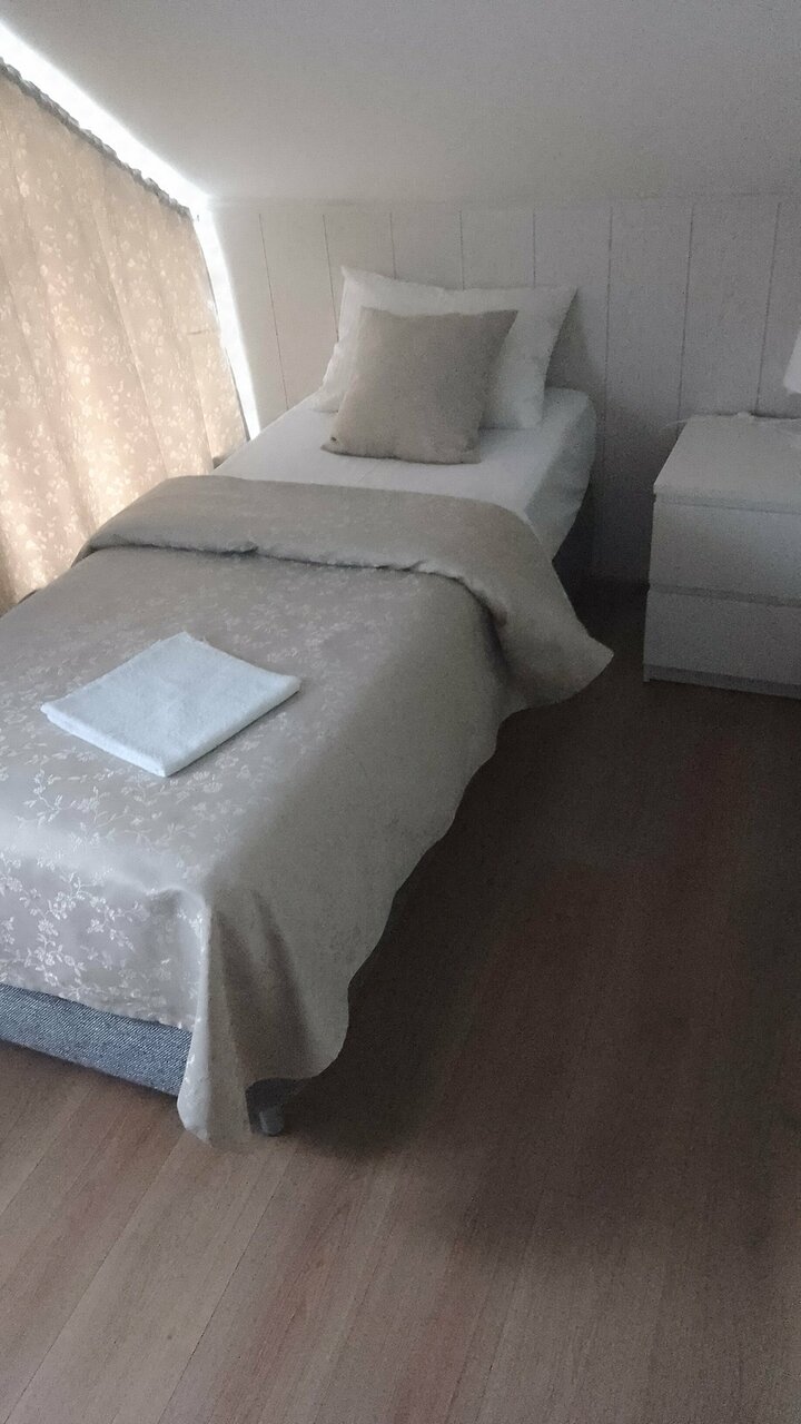 Снимали целый дом. Очень все понравилось. Приезжали в Александро Свирский монастырь. Там жильё в этот раз не нашли, все занято, решили остановиться в Лодейном поле. Дом расположен в прекрасном месте. Недалеко чудесное озеро с чистейшей водой и сосновый бор, детская и спортивная площадка. Хозяйка очень вежливая и дружелюбная. В доме все чисто. На первом этаже комната с двумя односпальными кроватями, диваном и телевизором, кухня со всем необходимым, душ и туалет. На втором этаже две комнаты: в одной две кровати, в другой — одна. В каждой комнате телевизор. На этаже душ, туалет, микроволновка. Рекомендую.