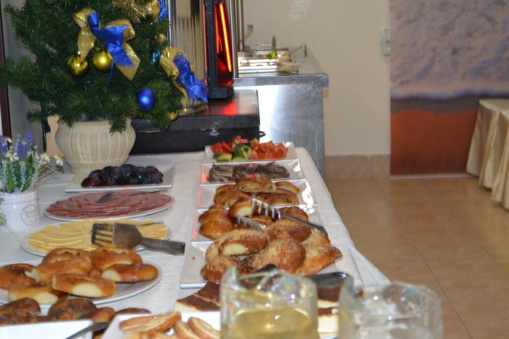 В кафе по меню, готовят в целом при заказе по меню вкусно, но долго… Приехали вечером и ждали заказанный ужин больше часа. А вот завтраки в этом же кафе при отеле просто отвратительные… Во-первых вся еда холодная , каша 3 дня подряд еле теплая , яйца ледяные , сыр самого низкого качества, не масло а самый дешёвый маргарин, тостера нет, хлеб позавчерашний….. Жаль, что при таком шикарном расположении, такое бездушное отношение к своей работе. Редко пишем негативные отзывы , но в этот раз решили поделиться, может хозяева прочитают и постараются исправить ситуацию.