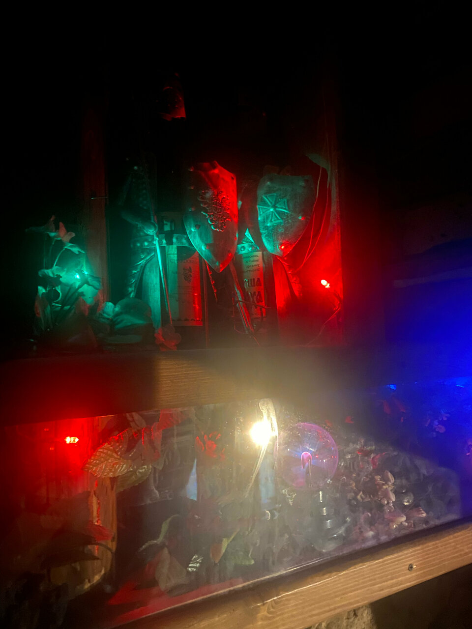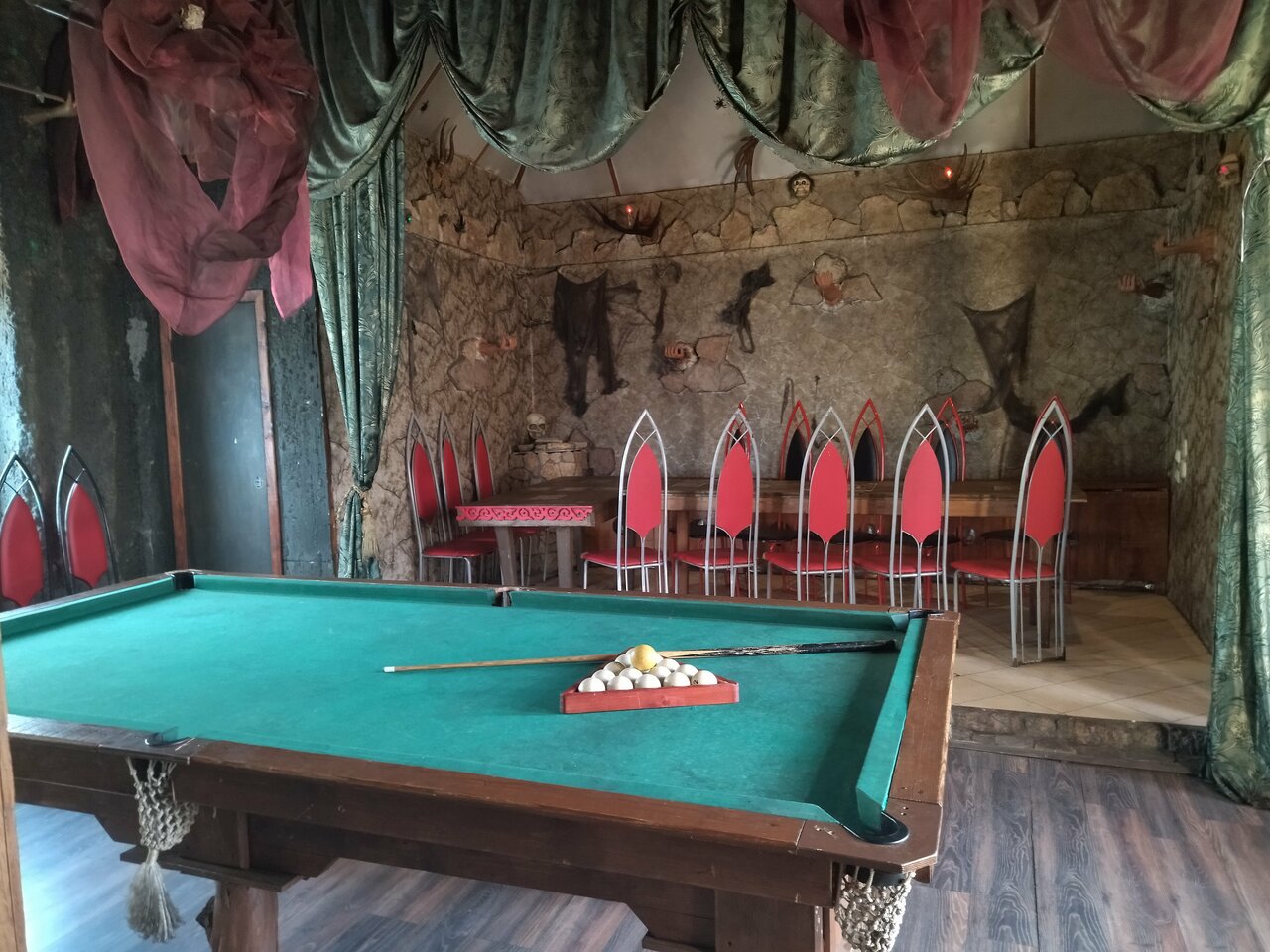 Местечко атмосферное, но уже сильно под уставшее… Когда работали все задумки, наверное было вообще круто. Для тематической вечеринки самое то. Немного не удобно всё время бегать по лестнице и то, что всего одна раковина в самом низу. Баня не успевает просыхать, видимо пользуется популярностью…