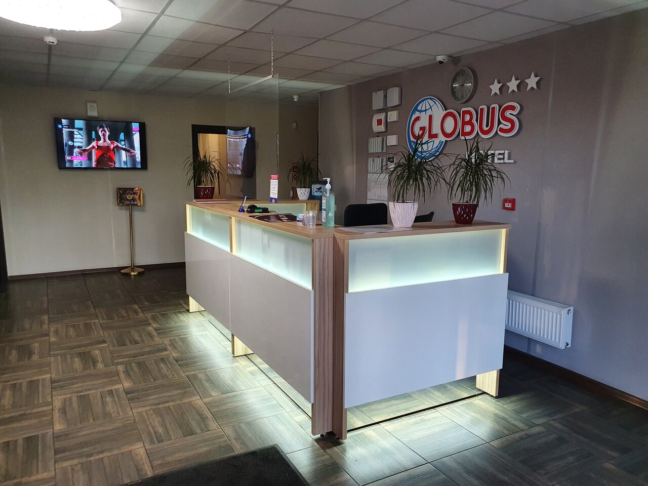 Globus Hotel – современная трёхзвёздочная гостиница в городе Луга (Комсомольский проспект, 54, корп. 2), работающая круглосуточно. Отель предлагает комфортные номера с санузлом, Wi-Fi, телевизором, мини-баром и другими удобствами.