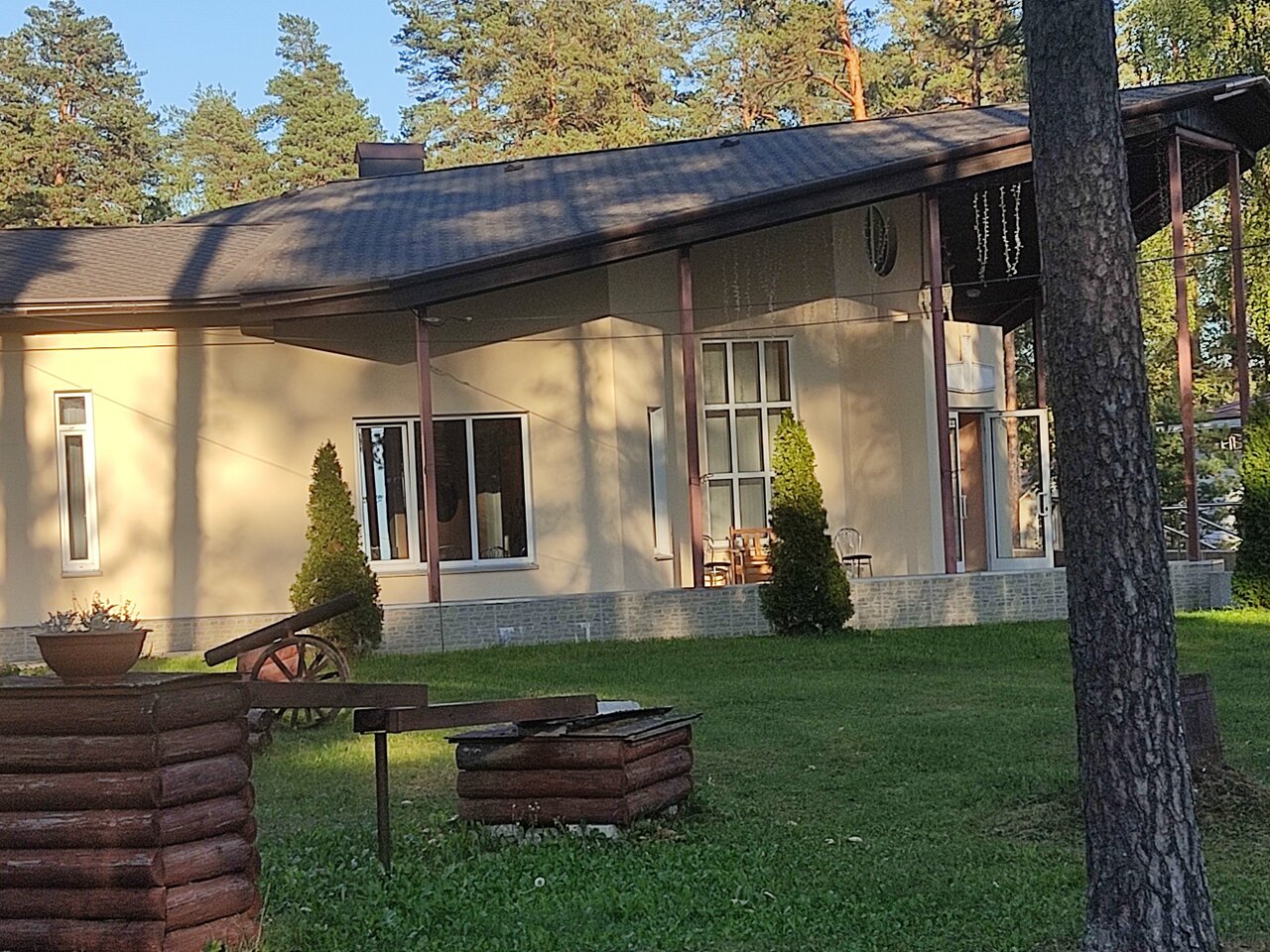 Очень красивое место, чистое озеро, сосны, свежий воздух. На территории есть беседка со столами для настольного тенниса, есть мангальные зоны, прокат лодок и катамаранов. Для спокойного отдыха все необходимое имеется