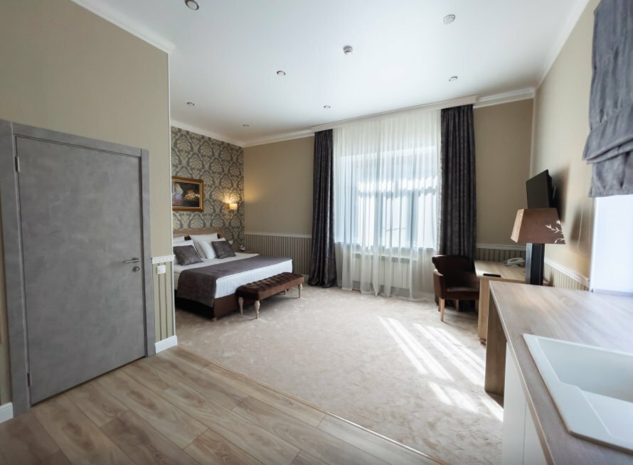 Просто шикарная гостиница, такую редко встретишь в нашей стране. Без преувелечений. В гостинице есть три стиля на любителя. Самый классный — лофт. Так же имеется сауна и бассейн. Отличная кухня, попугай Киви, эксклюзивная коллекция кукол, тренажерный и конференц зал, картинная галерея и многое другое!!!