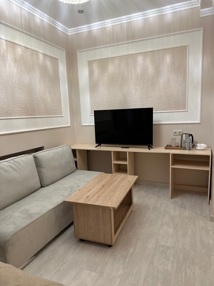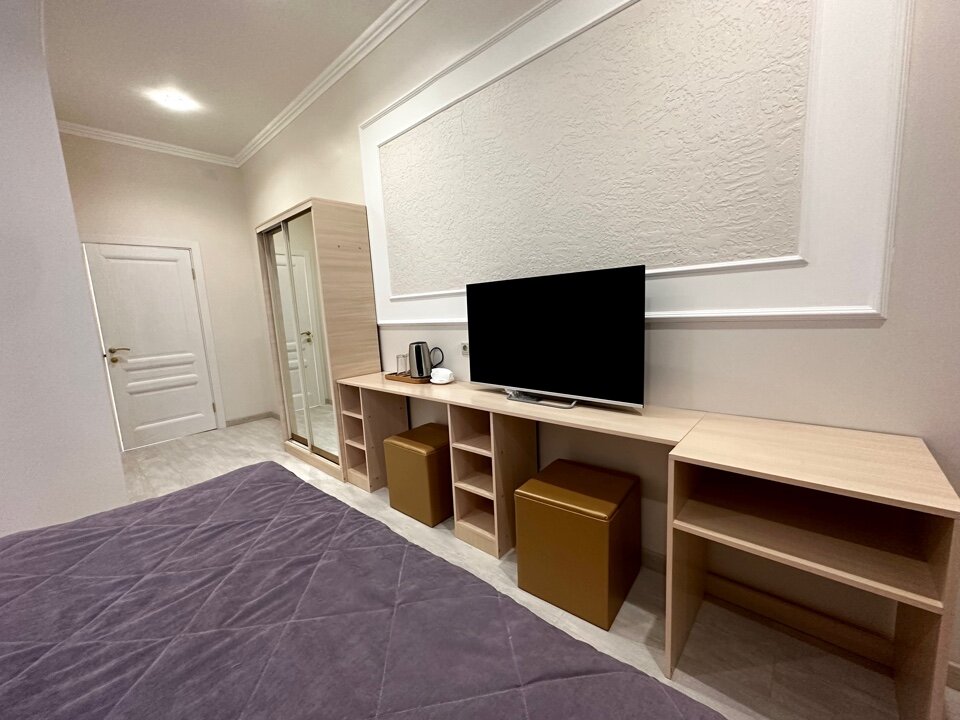 - Большой телевизор с Smart TV, чайник в номере.