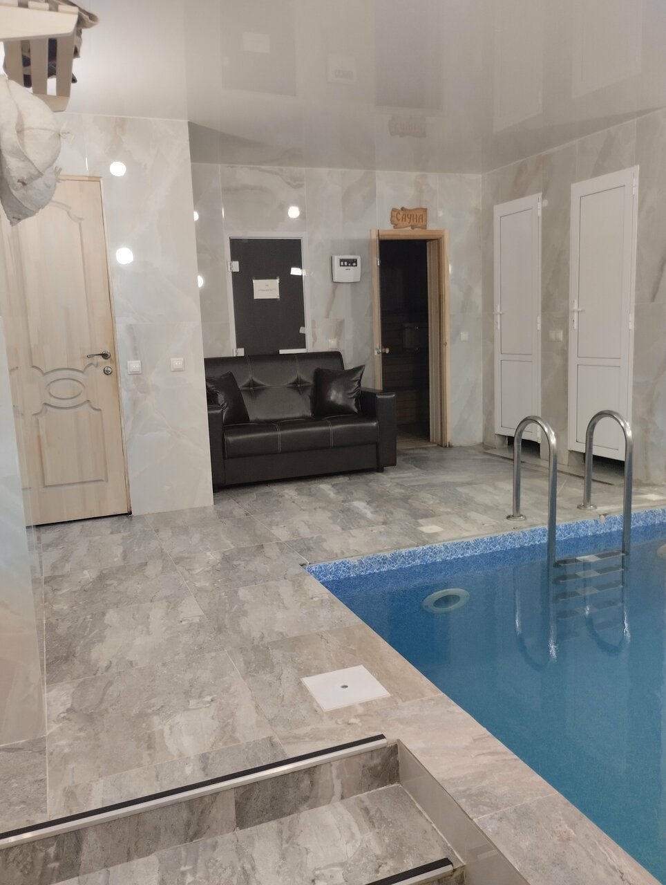 Про номера в отеле сказать не могу, но сауна заслужила 3 звезды. Во первых, к нашему времении, сауна была нагрета минимум, в гостевой комнате (столовой) очень холодно, форточка, расположенная очень высоко, не закрывалась, слив воды в столовой и в прихожей не предусмотрен, выходя из бассейна или душа, вся вода, что есть на Вас прийдёт с Вами в гостинную. Из небольших плюсов: есть посуда (в минимальном наборе; тарелки, вилки, стаканы под сок). Также есть микроволновая печь, но в общем коридоре. Ещё есть караоке) Для курящих не вариант! Курить запрещено, для того чтобы ‘подышать’ необходимо выходить на улицу ( проезжую часть), так ещё и по крутой лестнице