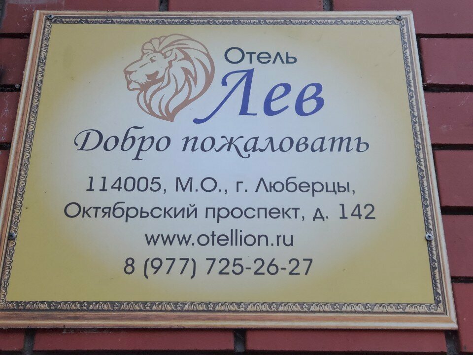 Гостиница «Лев» (Люберцы, Октябрьский проспект, 142) — мини-отель с круглосуточной стойкой регистрации, открытый в 2014 году. Расположен вблизи центра (до 3 км), предлагает номера от 3000 до 4500 ₽/ночь с санузлом, Wi-Fi, телевизором, холодильником и феном.