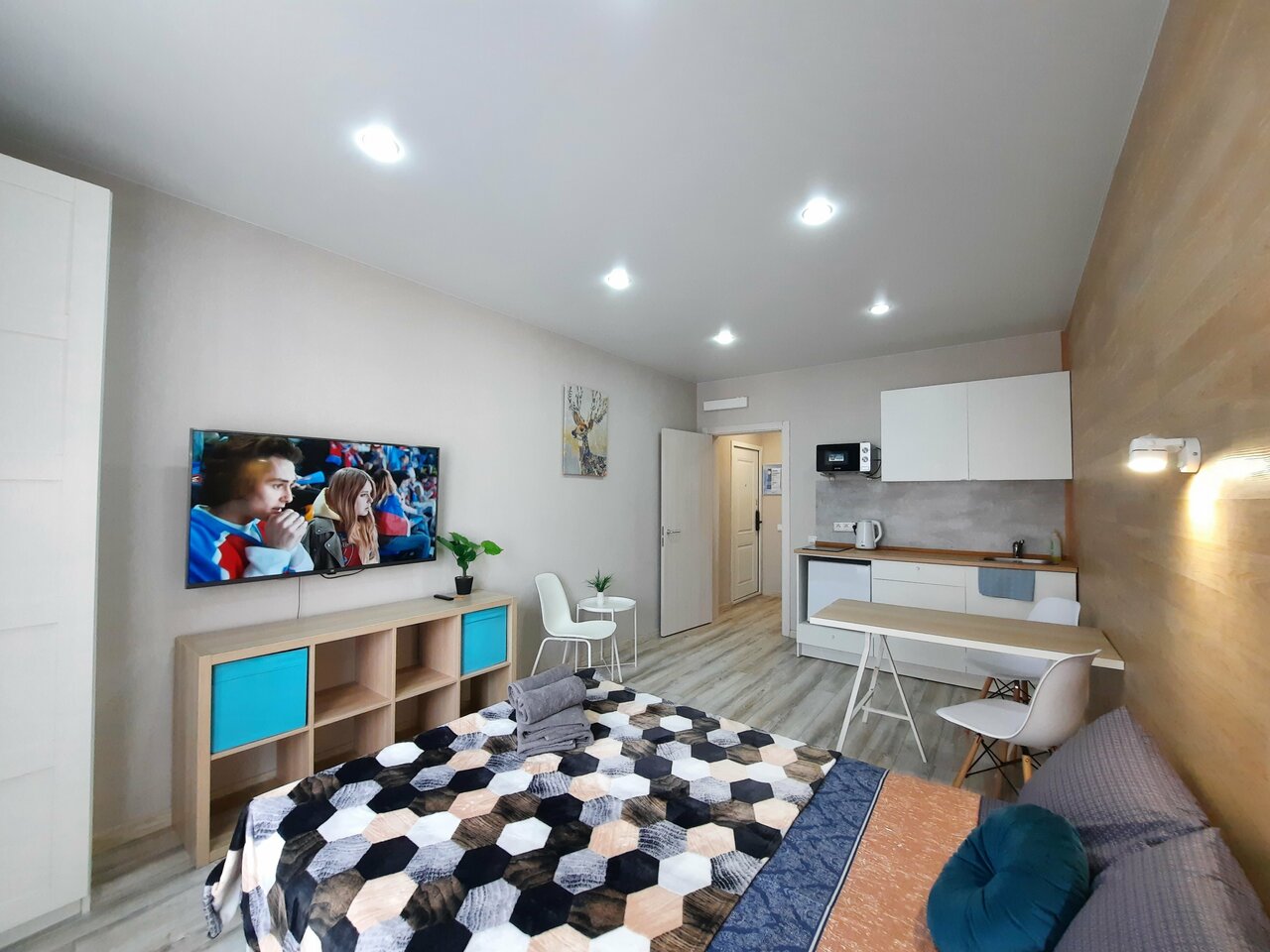 Студия полностью соответствует фотографии. Удобное местоположение, метро рядом и очень много магазинов. В студии чисто и все необходимое для комфортного проживания имеется. Отдельная благодарность менеджерам, всегда вежливые и отвечают моментально
