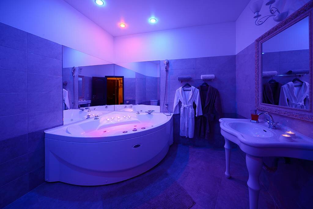 Этот номер «Люкс» отличается свежим интересным интерьером и высоким уровнем комфорта. Мы заботимся о том, чтобы вам было уютно и комфортно! Есть и джакузи.
