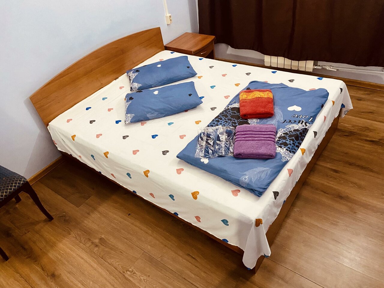 - Чистое постельное белье и полотенца.