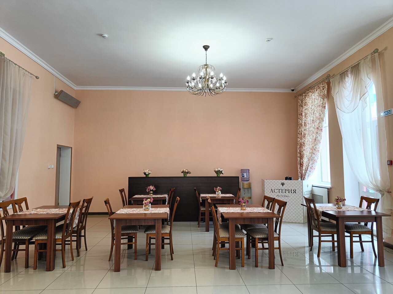 Была в Астерии на свадьбе у подруги, подруга снимала и банкетный зал и номера, мне все очень понравилось, а я на минуточку была на 21 свадьбе в разных городах и мне есть, с чем сравнивать. Мне все очень понравилось: зал огромный, номера большие, новые, чистые, еда вкусная, подача красивая. Комфортно, персонал дружелюбный. Очень хочется ещё повода, чтобы приехать в Людиново и в Астерию. Советую.
