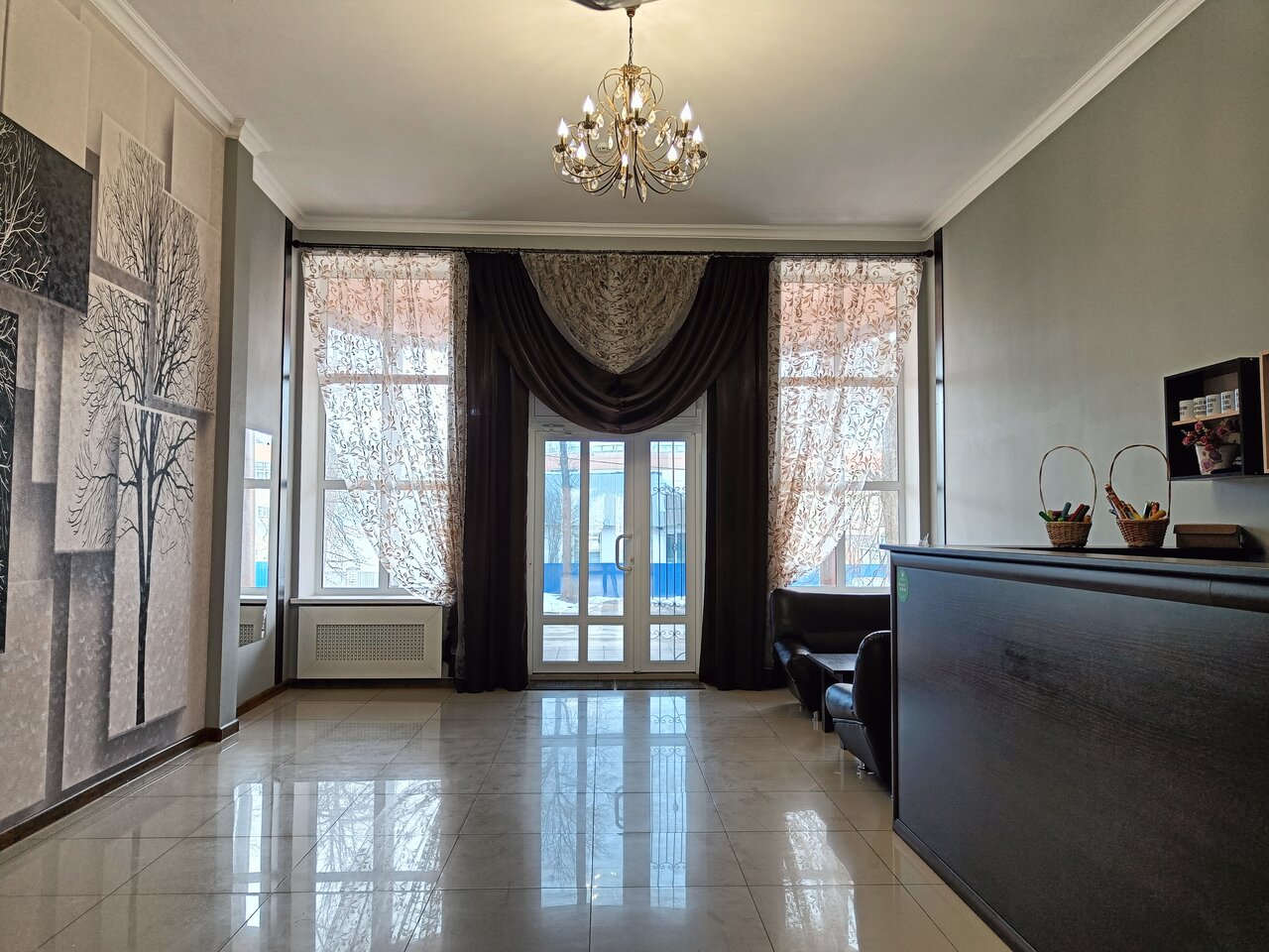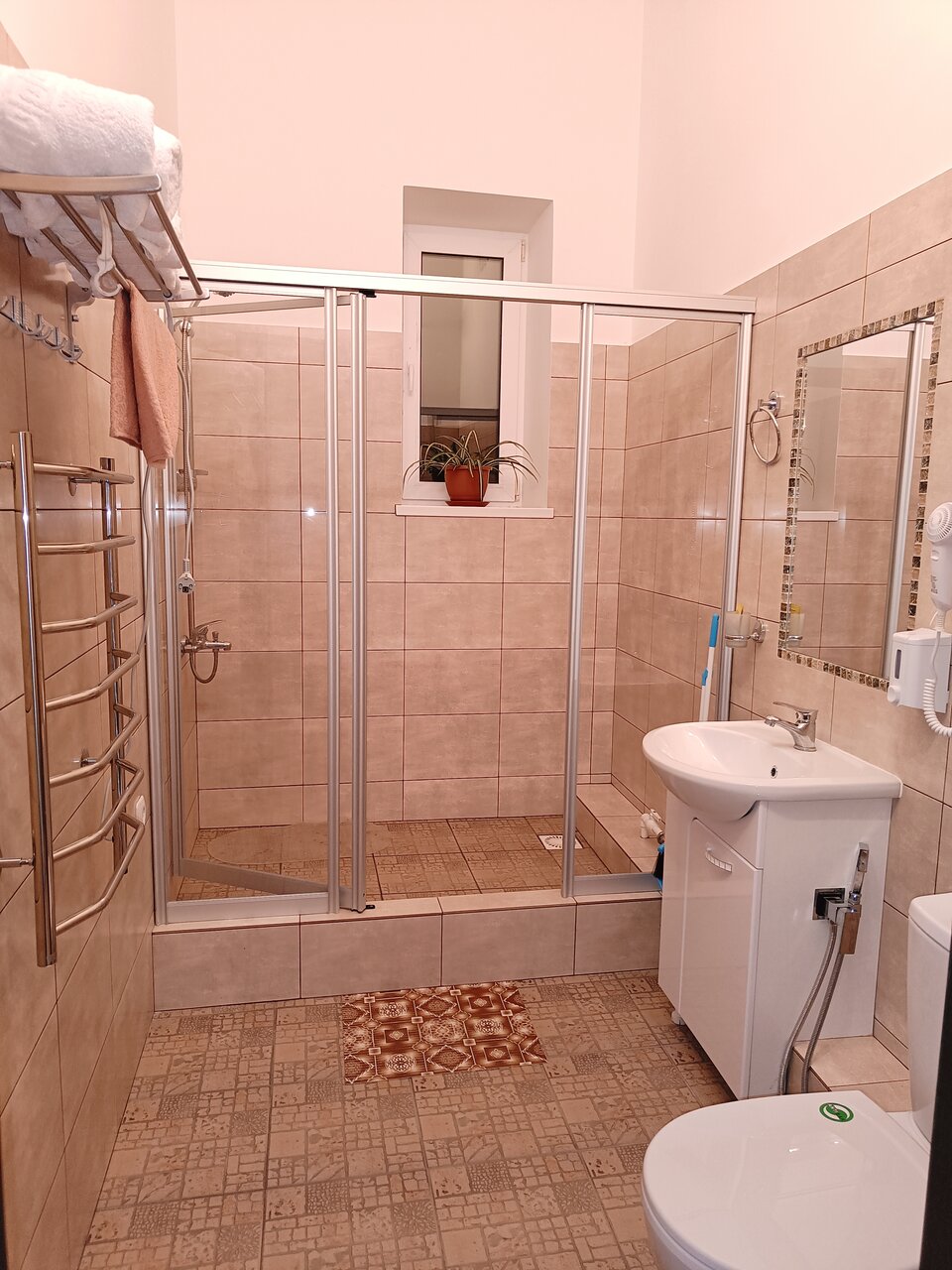 Приятный отель, приветливый персонал, нам понравилось. Чисто, уютно, высокие потолки, просторный номер. Все необходимое есть (зубная паста/щетка, тапочки, полотенца, чай/кофе по запросу). Завтрак простой, но вкусный. Не минусы, но то, что надо иметь в виду: *Горячая вода — из бойлера, поэтому в какой-то момент ее не оказалось, пришлось подождать, пока опять нагреется. *Холодные полы, босиком не походишь, только в тапочках. *Дегтярный шампунь и маска для волос. Мне лично нравится дегтярная косметика, но все равно я не очень поняла, зачем такое предлагать гостям. Оно же вонючее :) Общее впечатление хорошее. Буду еще раз — остановлюсь именно тут.
