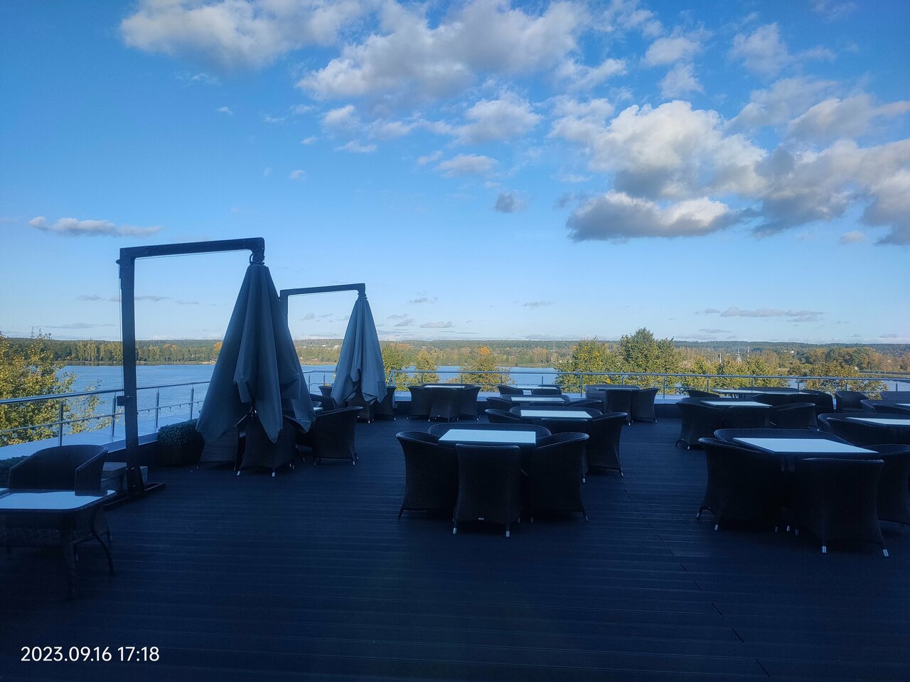Отличные впечатления! Практически всё на очень хорошем уровне. Ресторан с видом на озеро — потрясающе. Обслуживание официантами, сервировка, кухня — замечательно! Хотелось бы при случае вернуться именно сюда.