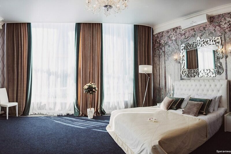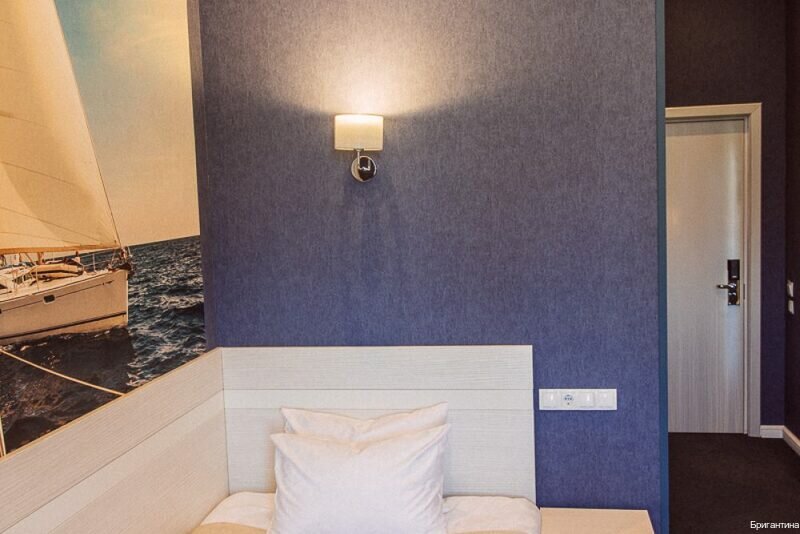Для данного населённого пункта это 5 звёзд, в сравнении с одноимённой (город) гостиницей, причём за ту же цену номера. В бригантина есть даже халаты и тапочки, плюсом чайник и набор приборов. Персонал великодушный, милейшие женьщины. В душевых комнатах установлены смесители с терморегулятором — это супер. Рядом с гостинией прекрасная набережная и озеро!