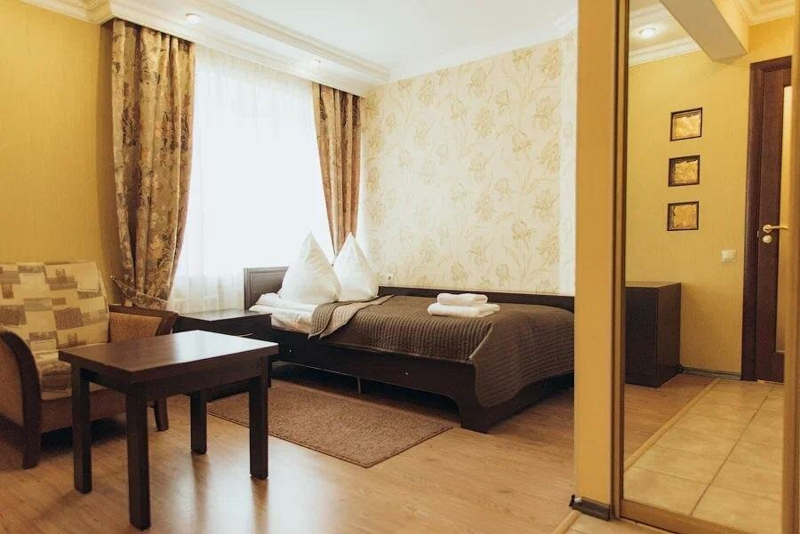 Очень хорошая гостиница. Комфортные номера, завтрак включен. Есть несколько недастатков, но в целом всё отлично. Вежливый персонал. В номерах убираются ежедневно! Недавно появилась услуга полупансион, ужины входят в счет. В гостинице есть билиард и сауна.