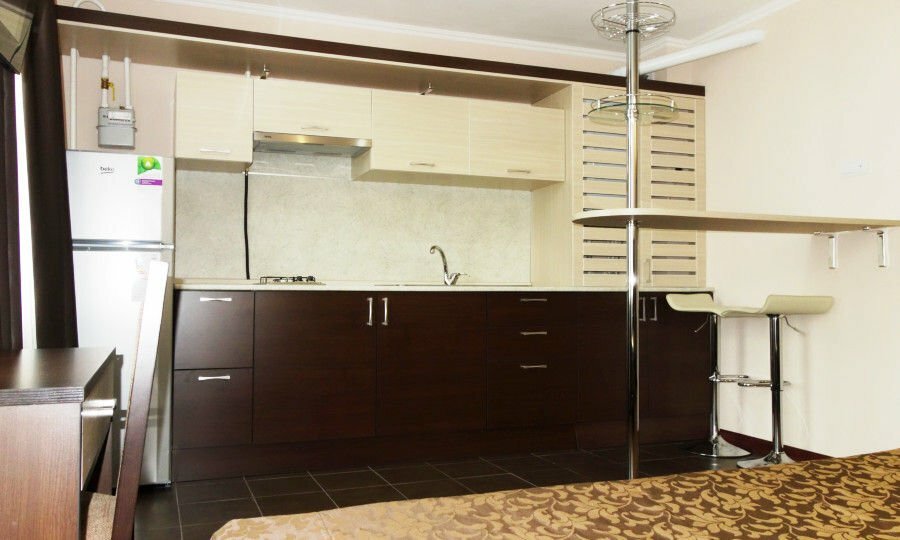 - Наличие кухни с плитой, холодильником и чайником.