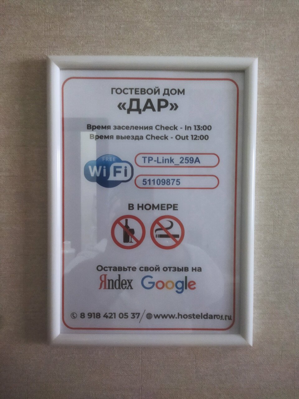 - Все телефоны отеля: +7 (918) 421-05-37
