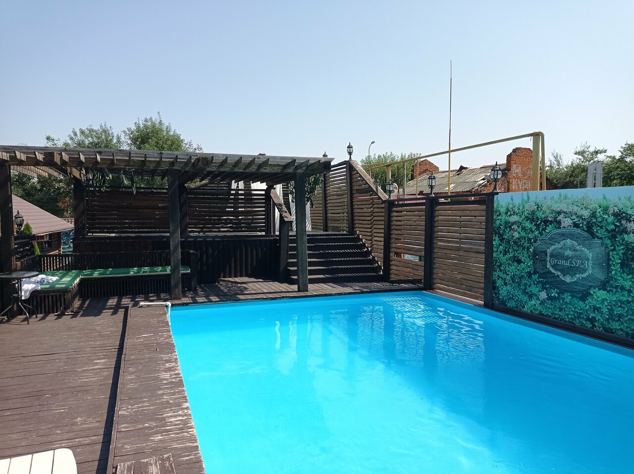 - Разнообразие услуг (бассейн, баня, фонтан, ресторан, шашлык).