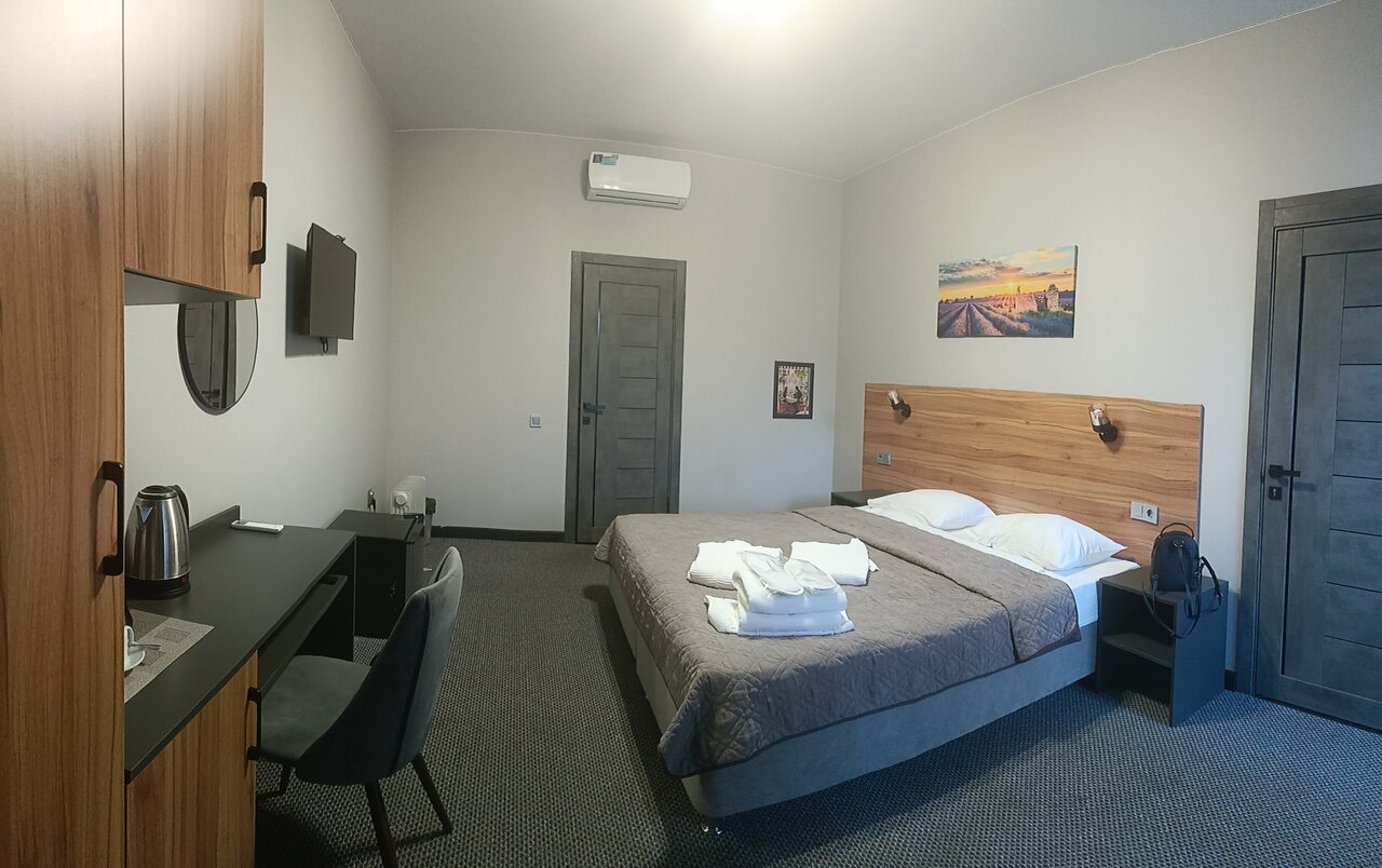 Стандартный номер 1 категории с двухспальной кроватью , позволяющий комфортно разместиться двоим гостям. В номере есть все необходимое для полноценного отдыха и для плодотворной работы. Питание не включено в стоимость.