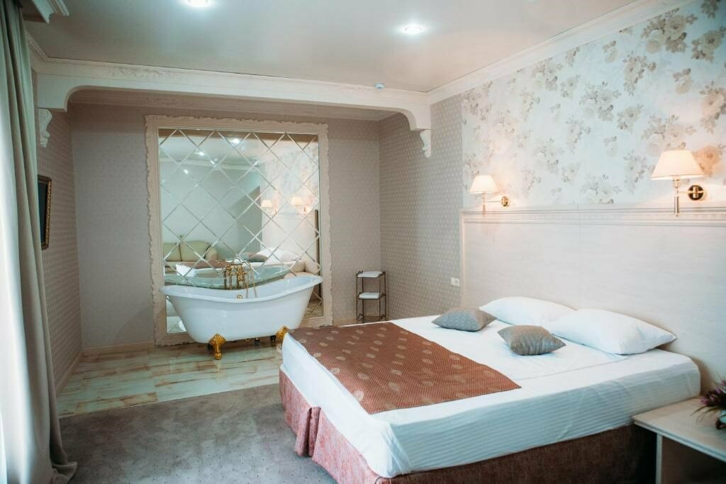 - Приветливый персонал, обслуживание на высоком уровне.; Отличный отель, хорошие номера.; Разнообразие услуг (бассейн, баня, фонтан, ресторан, шашлык).; Близость к центру (3 км).; Наличие развлечений (пинг-понг, бильярд).