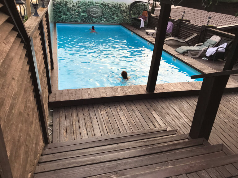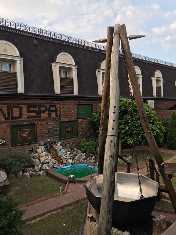 очень приятно, что судьба познакомила меня с хозяйкой этого отеля. очень антуражное место. На заднем дворе Каскад бань, саун, хамам, и даже огромный чан с водой, под которым горит костер, забыл, как он называется, как — то сразу вспомнил сказку про конька — горбунка, и захотелось переродиться в молодого и здорового