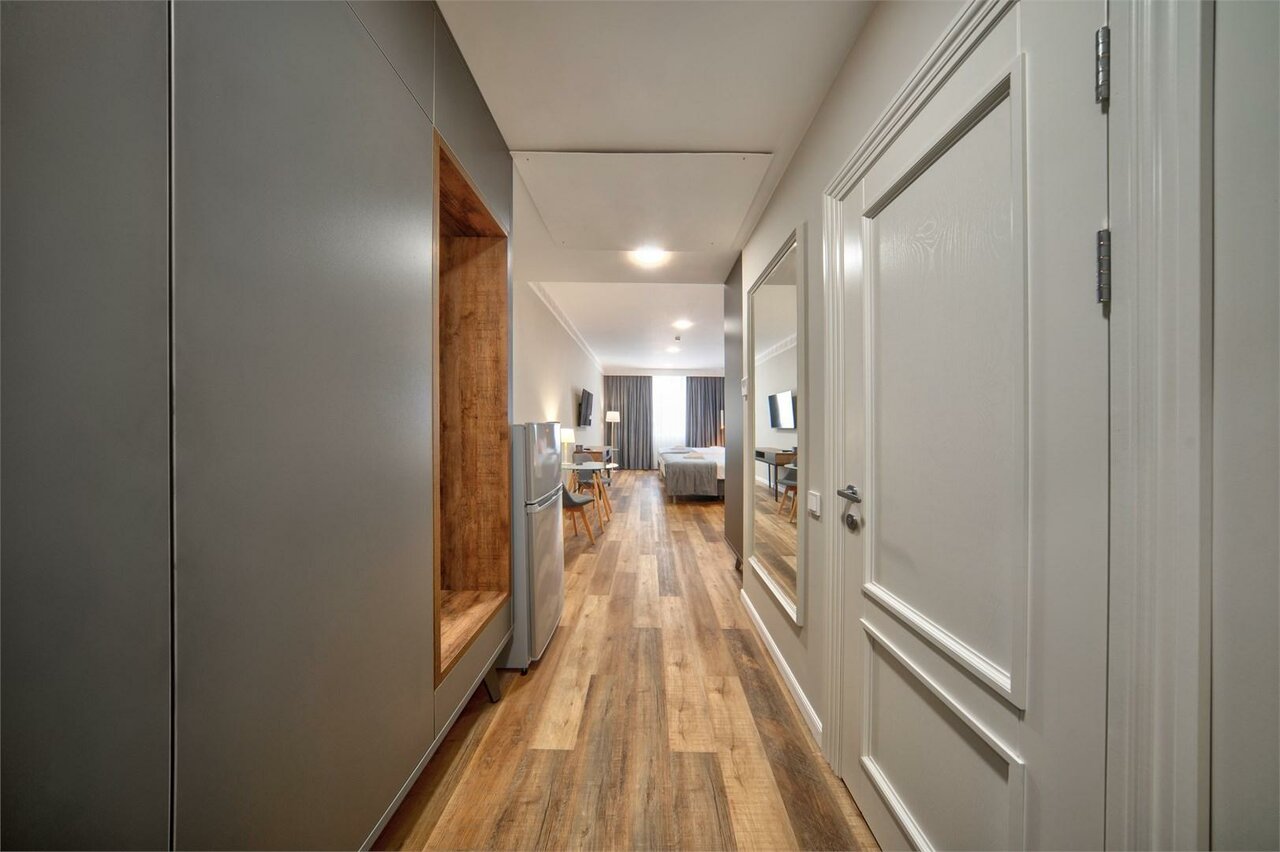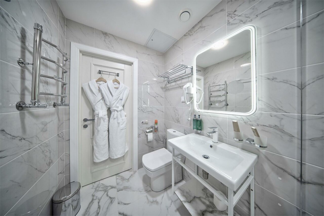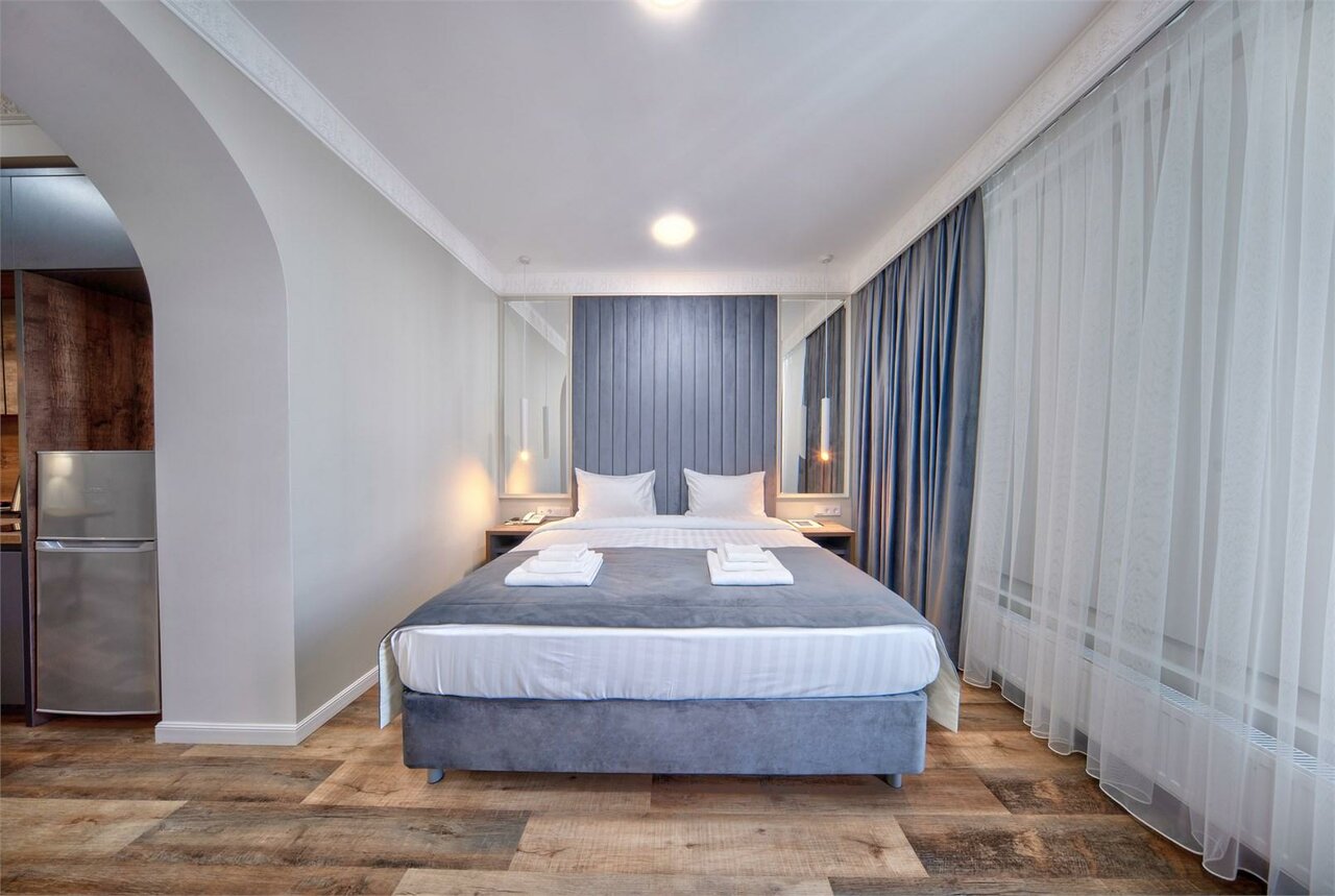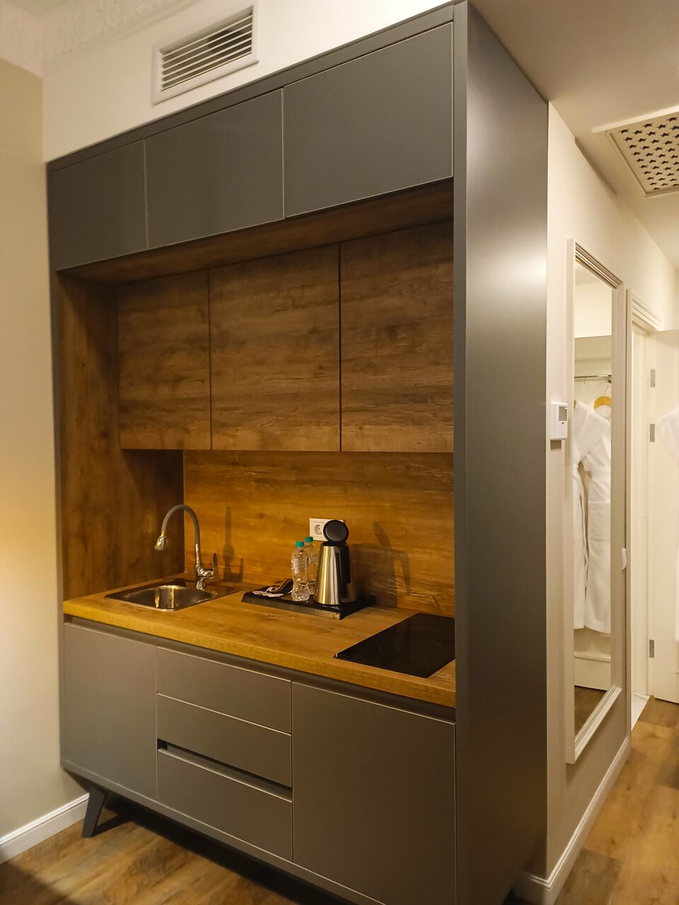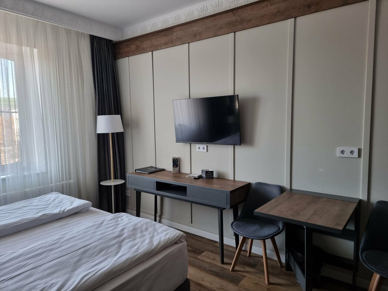 Отличный новенький отель в самом центре города! Остановились 05.01.2024 компанией в трёх номерах. Всё идеально чисто, в ванных есть максимум принадлежностей, кухня в номерах с полным набором всего необходимого, как дома. Стильный современный интерьер. Очень удобные кровати. Понравилось всё! Огромная благодарность за теплый прием и прекрасное обслуживание! Ещё не раз вернемся и будем рекомендовать вас! Процветания вам!