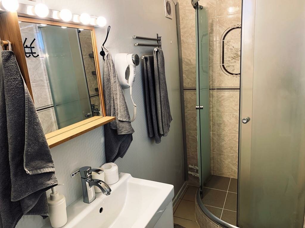 Давно знаем эту гостиницу. Там очень комфортно. Номере чайный набор, шкаф, сплит система и душ туалет . Обьшая кухня. Не дорого . Рекомендую