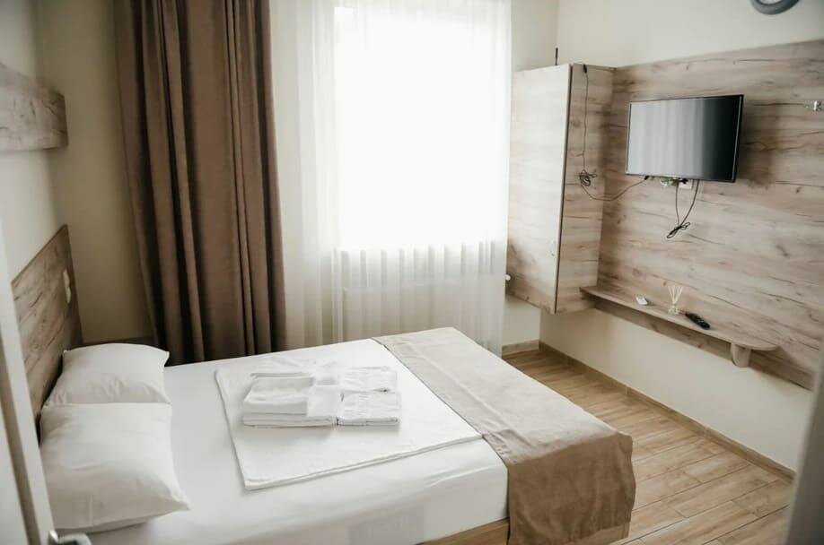 Номер маленький, но уютный. Все есть: мыло, гель, туалетная бумага, холодильник, тапки одноразовые. Шкафа в номере 5 нет, но в целом на одну ночь норм.