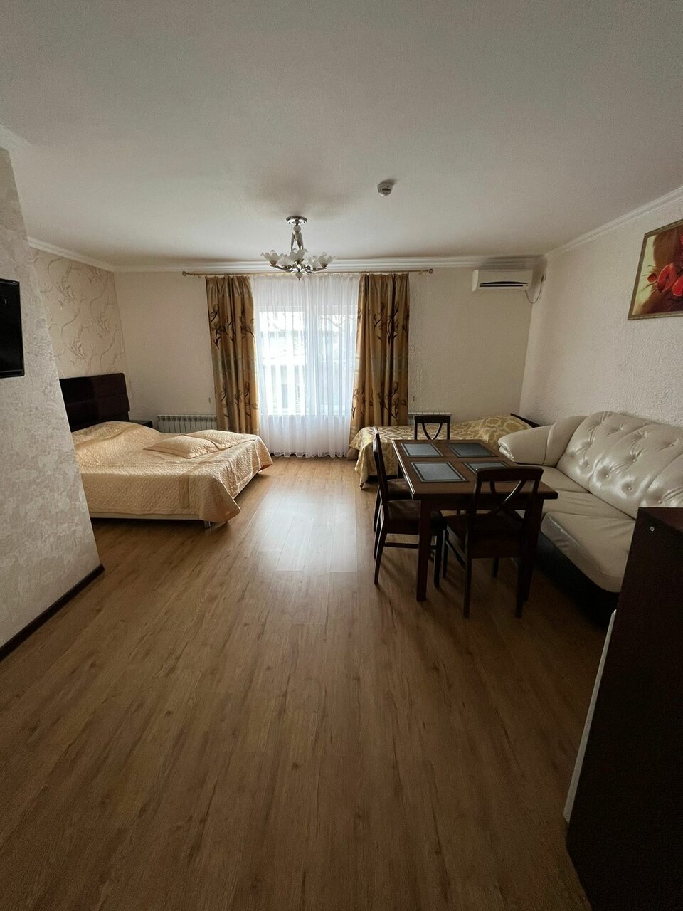 Очень рекомендую именно этот отель. Очень вежливая хозяйка, есть своя парковка, не надо ломать голову, где поставить машину. Номер чистый, у нас был 12, есть стаканы, тарелки, чашки, ложки, вилки, открывашка, вроде и стопки были или бокалы, не помню, чайник, столик, табуретки и пуфики. Микроволновка и утюг с доской есть в коридоре. Кровать супер удобная, постельное белье не скользит, не комкается, подушки мне понравились, плотные, но не жёсткие. Полотенца чистые, не застиранные. Очень рекомендую! Одна печалька-кафе нет.
