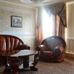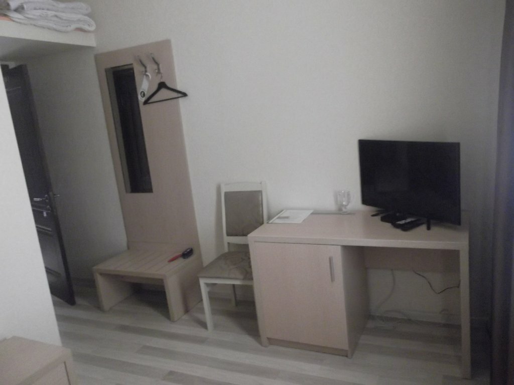По обстановке в номере ничего плохого сказать не могу, все есть для нормального проживания — кровати с тумбочками, журнальный столик с мягкими стульями, шкаф в прихожей, кондиционер, холодильник, но, все впечатление испортила неисправная система водоснабжения в номере, т.к. после каждого принятия душа, в комнате, через пол, начинала просачиваться грязная вода и образовывались лужи на пол-комнаты, которые приходилось оперативно вытирать. И, судя по желтым от воды обоям, отстающему плинтусу и подгнившим половицам, администрация даже не думает исправлять данную проблему. Также минусом является отсутствие лифта и то, что на завтрак нужно идти в соседнее помещение, через улицу. Плюсом — близкое расположение большого ‘Магнита’.