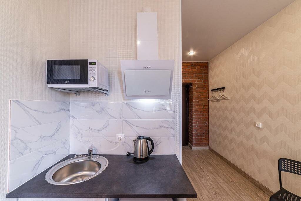 - Наличие кухни, стиральной машины, микроволновки, чайника, холодильника.
