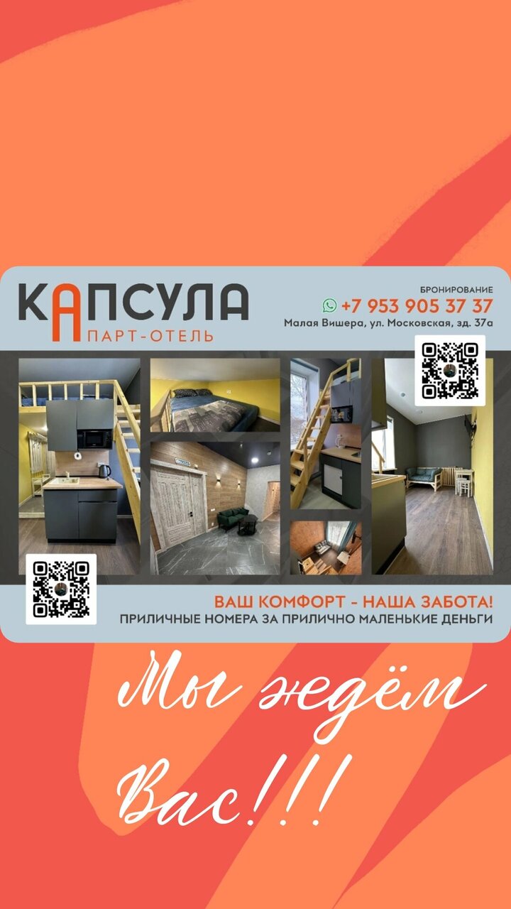 Всем Привет !нашли гостиницу в Малой Вишере, напрямую через интернет. Очень довольны ! Удобное расположение ! Персонал дружелюбный ! Чисто! Уютно! Все необходимое есть! Буде останавливаться только в Капсуле! Рекомендуем !