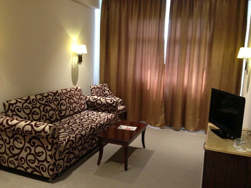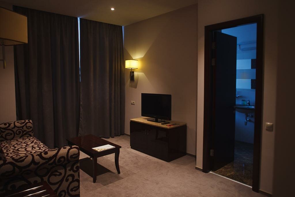 Уютный двухкомнатный номер с душем. В номере есть фен, мини-холодильник, телевизор, двухместный диван, косметический набор, чайник, чайный набор и бутилированная вода.Завтрак входит в стоимость проживания.