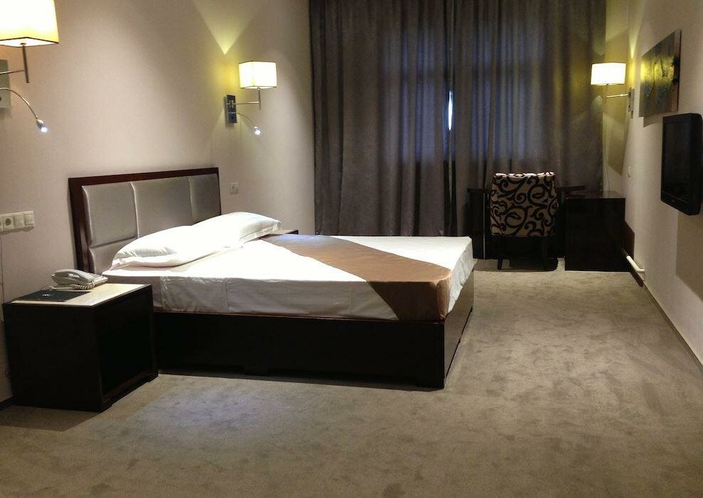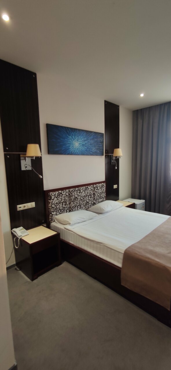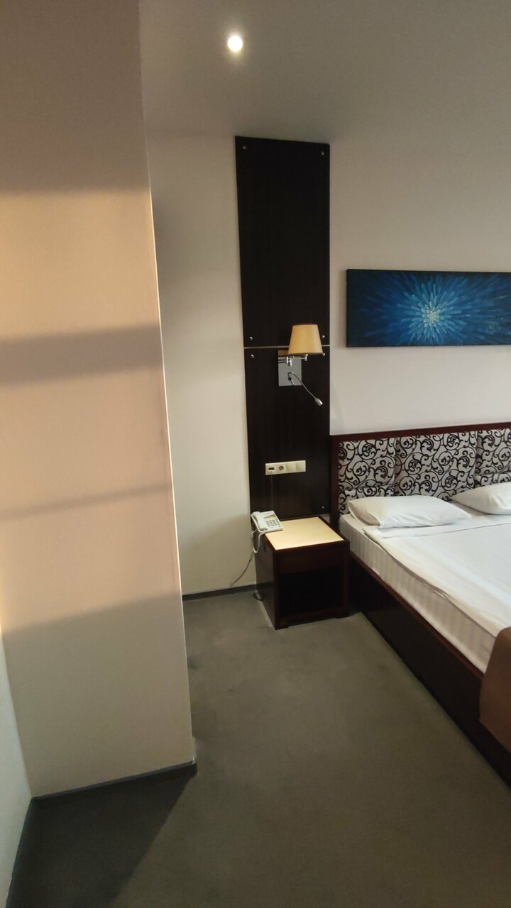Гостиница на 4 из пяти, но лучше её к сожалению в городе нет. Гостиница относительно свежая, но владелец не следит за состоянием и всё становится печальнее и печальнее… В душе отсутствует дверь и вода льётся на пол. Бачок унитаза наполняется почти час. Нет ни одного крючка в ванной. В душе нет ни полочки ни чего другого куда положить мочалку и шампунь. Постельное бельё синтетическое и электролизуется. Пружины из матраса прощупываются на поверхности.
