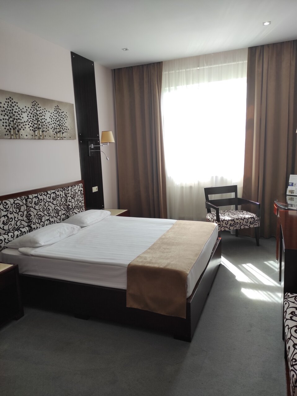 Отель старый. Обновить бы номера. Старое всё! Ковролин грязный, изношенный, мебель старая. Как вариант на одну ночь — нормально. Считаю стоимость в 4600! за двоих завышено! ОТВРАТИТЕЛЬНЫЙ завтрак!!!! Все три блюда НЕ понравились. Скрембл пригорел, манная каша — это было просто теплое молоко и ложка неразваренной манки в нем, венские вафли как пластилин. Весь завтрак — несъедобное!