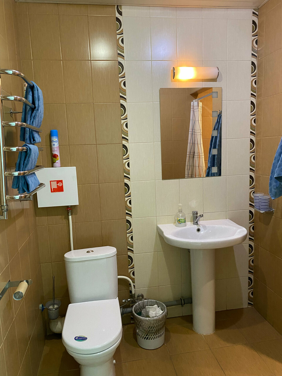 Доисторическая гостиница, а цена за двухместный номер 3500 тыс., за доп. место (диван из икеа, который раскладывается и ты лежишь на полу просто), по телефону при бронировании сказали, что оно стоит 500р, а по факту оказалось 1000. кондиционера нет, стоит вентилятор. холодильник, микроволновка, чайник есть. Чисто. оформляли нас долго, все в ручном режиме, записывают ручкой в журнал. есть парковка