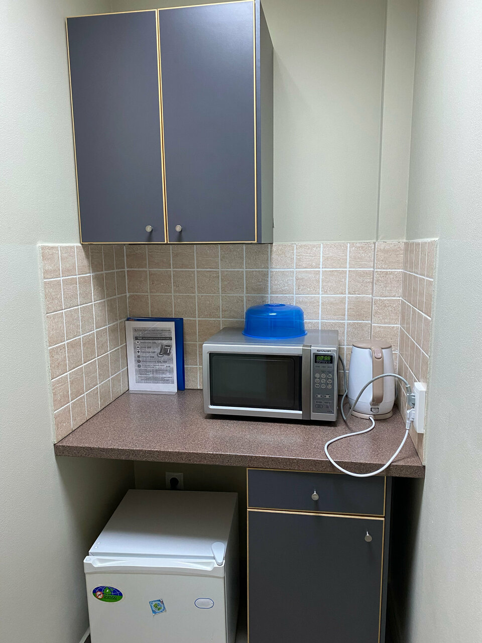 - Наличие мини-кухни (микроволновка, посуда, чайник).