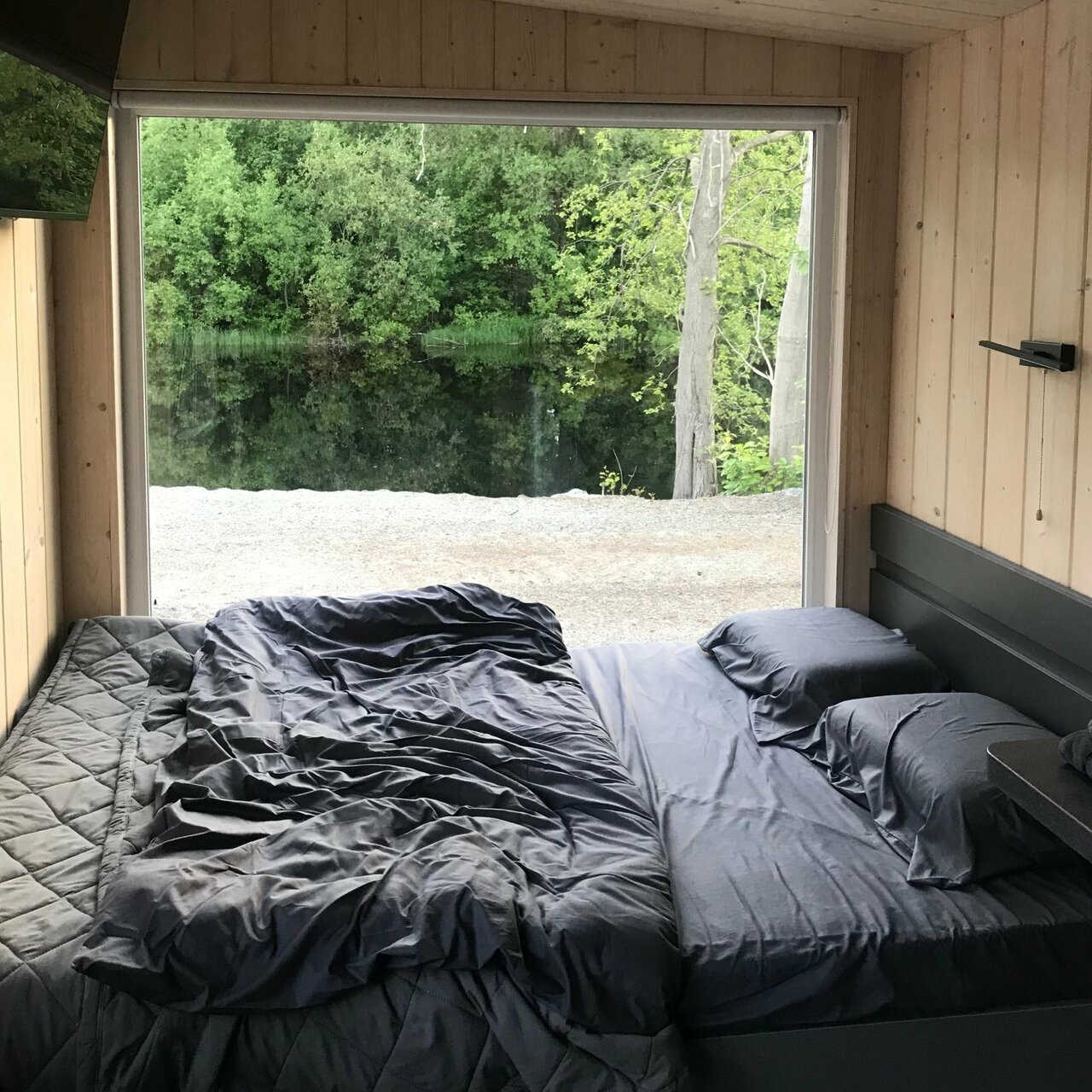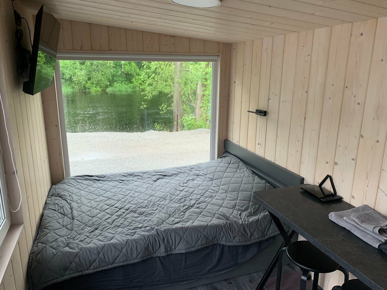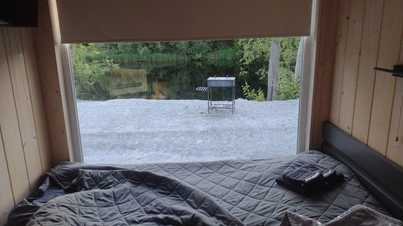 Очень хорошее место и очень хорошие хозяева. Комфортно общаться, бесконтактное заселение, домик со стеклянной стеной стоит прямо на берегу реки в тихом парке. Просто идеально. Внутри есть всё — от вайфая, продуманно расположенных розеток и питьевой воды до душа с тёплым полом, кухней со всем необходимым и даже бокалами. Тут просто чудесно.