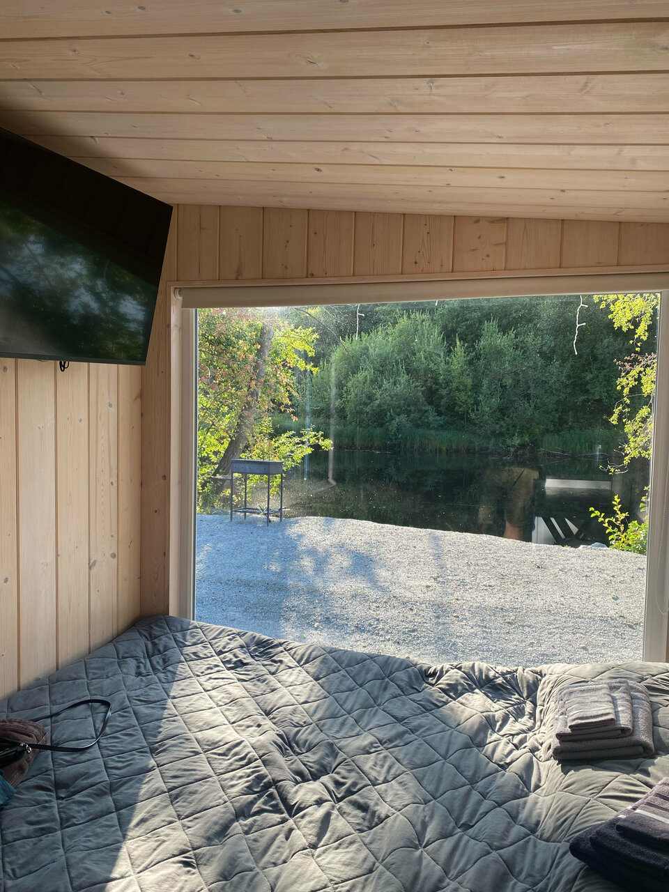 В маленьком домике пробыли три ночи — тестировали лодку с электромотором. Очень удобная локация — сход в воду в пяти метрах от домика. Снаружи есть розетка — можно заряжать аккумулятор, не затаскивая его домой. Домик очень маленький, приятный, функциональный. Панорамный вид из окна — просто роскошный. В пяти минутах — магазин, озеро, хороший пляж, в пятнадцати минутах — вокзал. С удовольствием прогулялись на гору, тоже недалеко. Оценила отличный матрас и подушки — спина и шея рады. В целом очень приятные воспоминания от отдыха, спасибо хозяевам! )