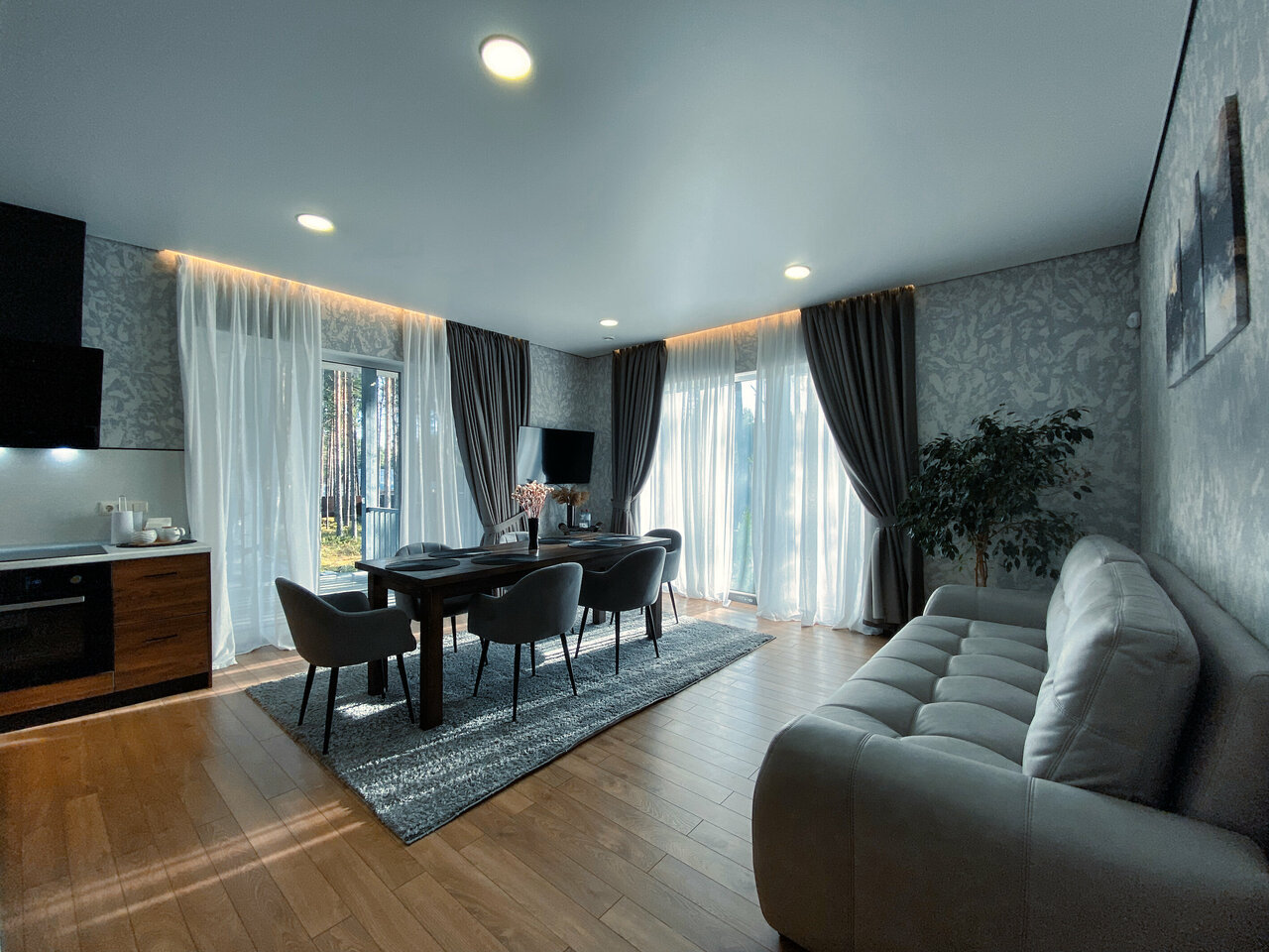 Остановились на одну ночь в декабре 2023 в доме отеля семьей из 4 человек. В восторге полном, и взрослые, и дети. Дом очень чистый, постельное белье новое, посуда новая, камин, очень уютно и красиво все перед Новым годом. Полотенца, шампуни, мыло — без ограничений. Мангал на улице, дрова — очень приятно было получить все оборудование, подготовленное для отдыха. Отдельно стоит рассказать про завтрак, который входит в стоимость аренды дома — это бомба! Было неожиданно получить завтрак уровня отеля 5 звезд с персональной сервировкой прямо в доме. Очень хотим приехать летом, изучить окрестности и дойти до озера таки, одной ночи было явно мало в таком доме. Спасибо!!!