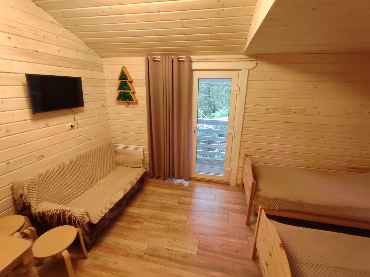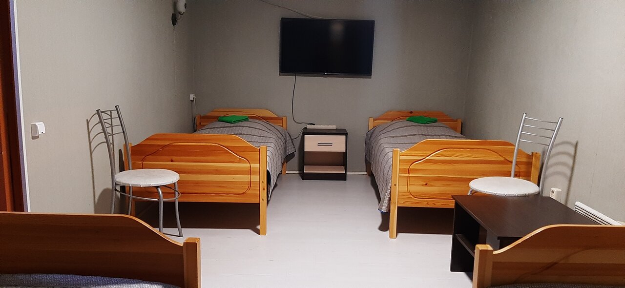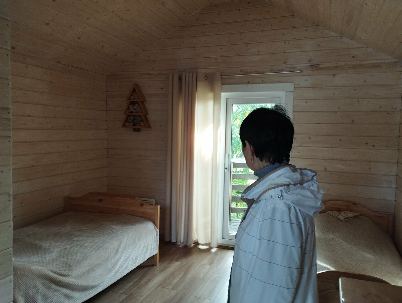 Гостевой дом, с отдельными номерами для сна и отдыха, общая кухня и гостинная. На удивление нам повезло быть одним. Хозяин сказал, что обычно бронируют заранее. Всё чисто, аккуратно, по домашнему. Стоянка автомобиля на территории, всё огороженное. Магазины в шаговой доступности.
