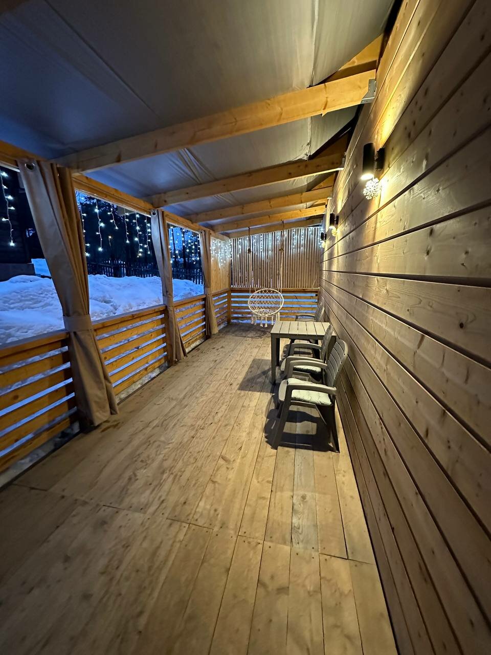 Чисто, приватно, мангал, большая веранда, два хороших раскладных дивана. Боюсь, отделка домика зиму не переживёт.