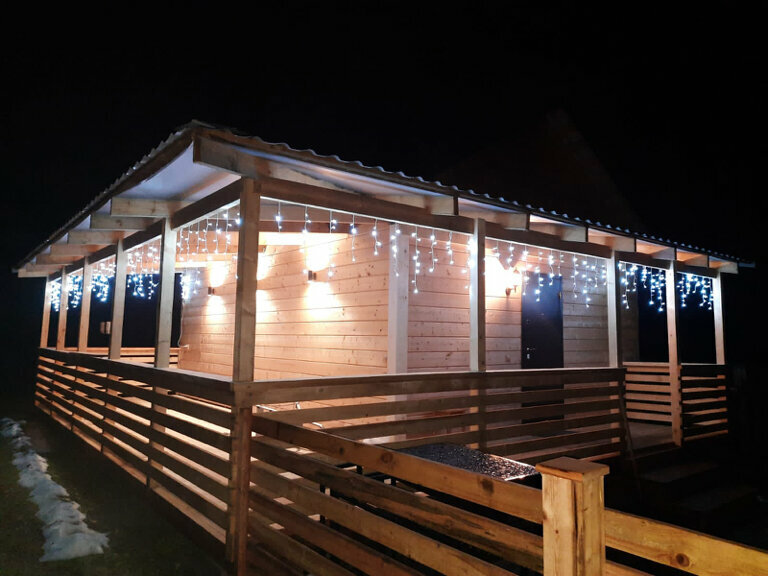 Останавливались с семьей в этом прекрасном месте. Очень понравилось. Все новое, чистое, есть посуда, микроволновка, холодильник, если замерзнете-2 обогревателя. Очень удобные спальные места. Два раскладных дивана. Чистейшее постельное. Также дают полотенца, хватило на 4х человек. Есть мангал, даже коптильня! Для детей можно попросить батут, на веранде есть стол и качель. Очень благодарны хозяевам за чудесный прием и отличный сервис! Очень рекомендуем!