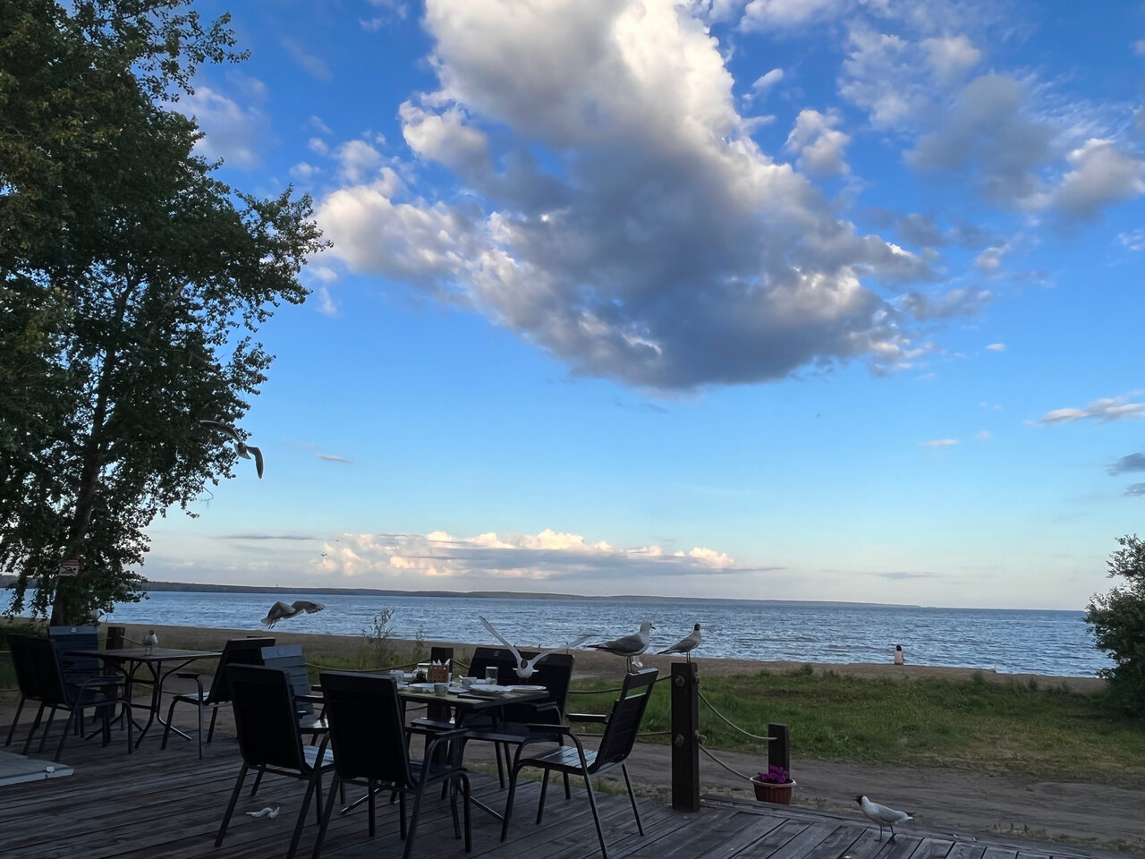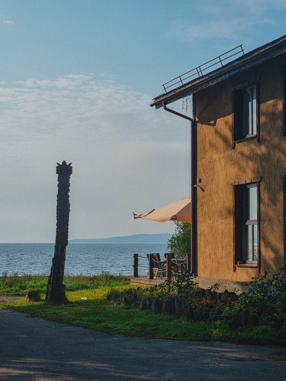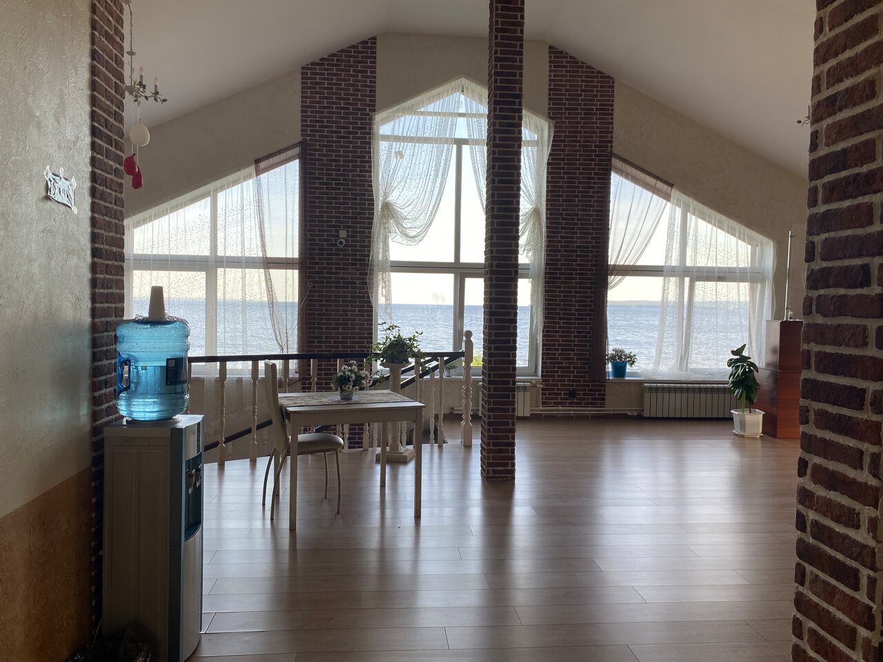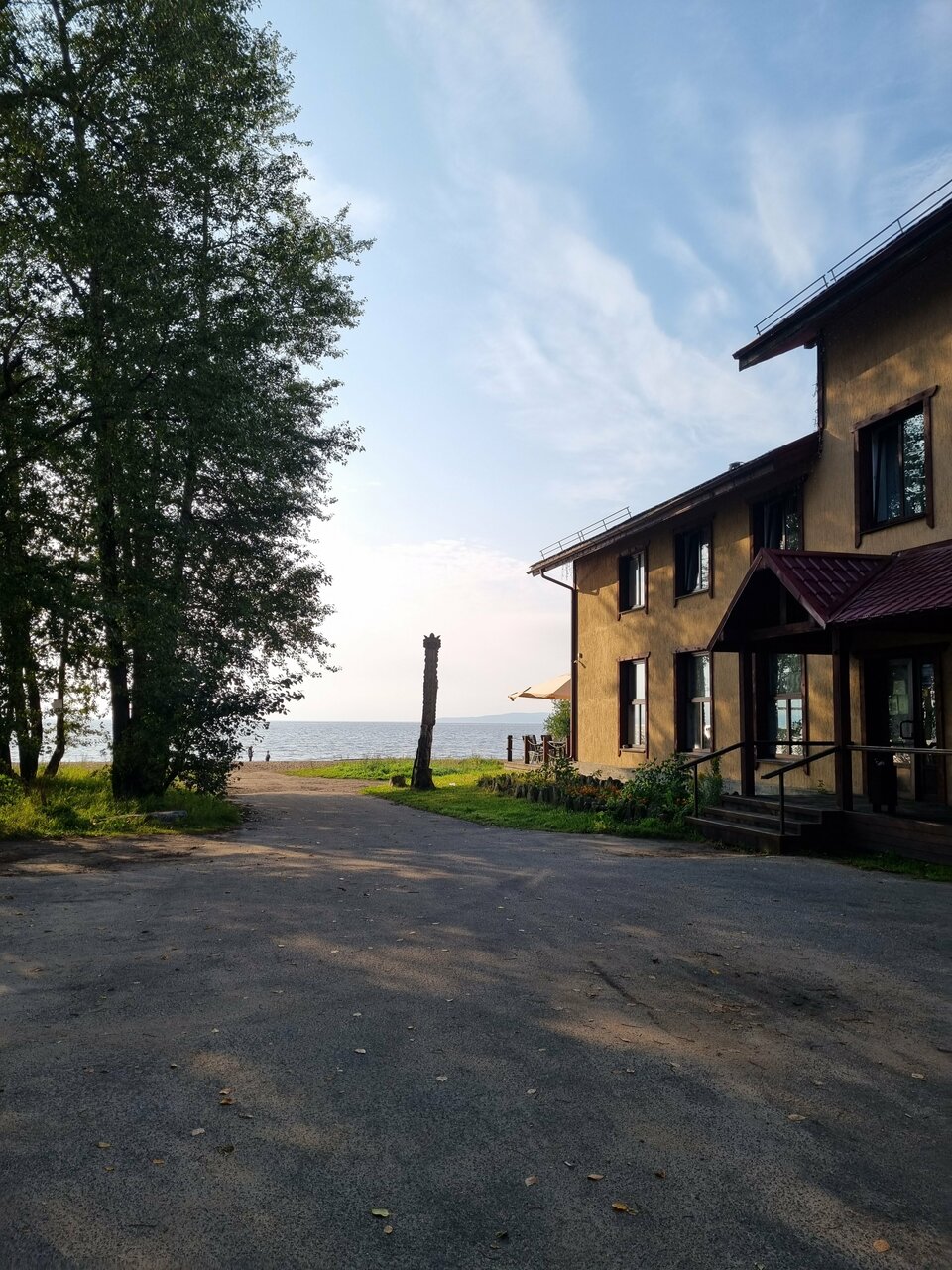 Красивый берег озера. В гостинице ресторан, работает с 9 до 21. Завтрак если нужен до 9 часов, то надо заказывать вечером. Можно с животными. В номерах нет холодильника и посуды, даже стаканов, водички не во что налить. На этаже есть кулер с водой и одноразовыми стаканчиками.