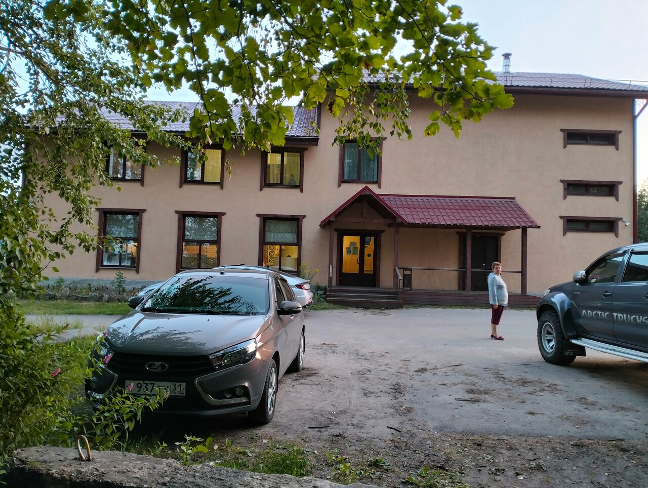 Останавливались на ночёвку по дороге домой в Мурманск, чисто, уютно, но не стоит своих денег (3000 руб. семейный номер в августе). Чайника и тапочек в номере нет. WiFi просит пароль, вылетает. Плюс-красивый выход на озеро в 20м (но берег загажен окурками и углём). Оценка 4-