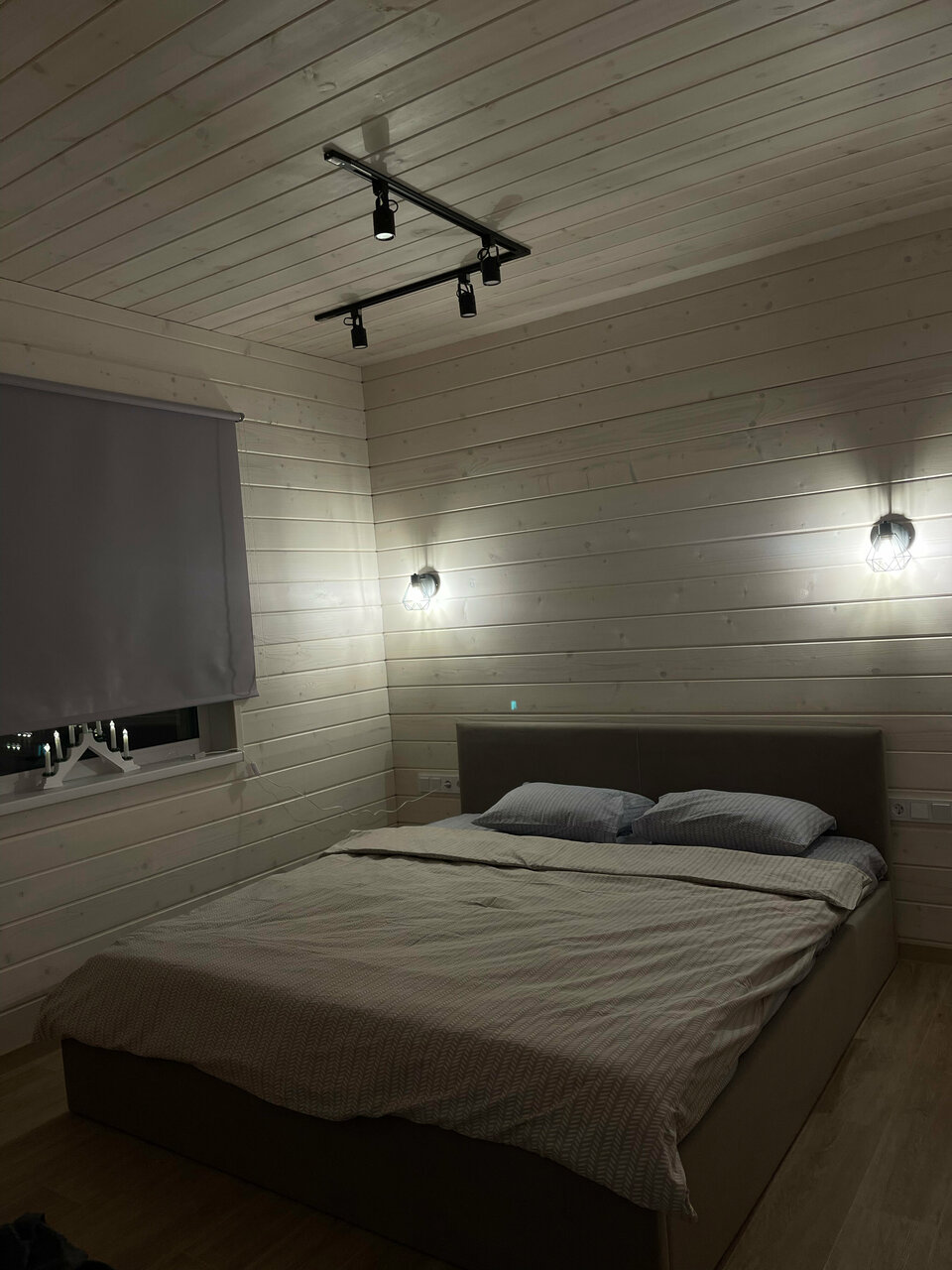 Наш просторный дом располагает до 8 человек, который оборудован всей необходимой техникой, посудой и текстилем, также в доме имеется финская сауна.