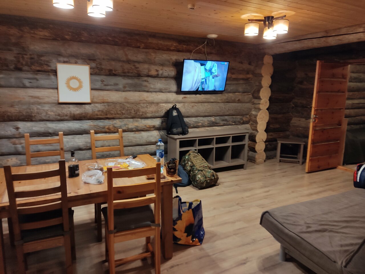 Отличное место размещения для отдыха на природе: возможность аренды различных водных и наземных транспортных средств, близость к местам сбора грибов и ягод. На территории имеются мангалы и беседки для приготовления шашлыка. Из удобств в номере: микроволновка, холодильник, фен, подогрев пола, телевизор. Из пожеланий: не хватало подвесного уголка для шампуней в душевой кабине, высокого столика для работы с ноутбуком (на улице в любом случае слишком прохладно уже через полтора часа неподвижной работы сидеть), не на всех окнах есть антимоскитные сетки, что для жизни в лесу принципиально. Ах да, дополню отзыв: невозможная подъездная дорога и дорожки к домам, подвеска машины спасибо точно не говорит